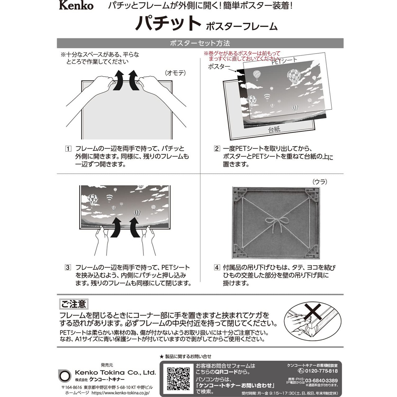 ケンコー(Kenko) ポスター用アルミ額縁 パチット ポスターフレーム A3 フロントオープン式 ブラック 日本製 AM-APT-A3-BK