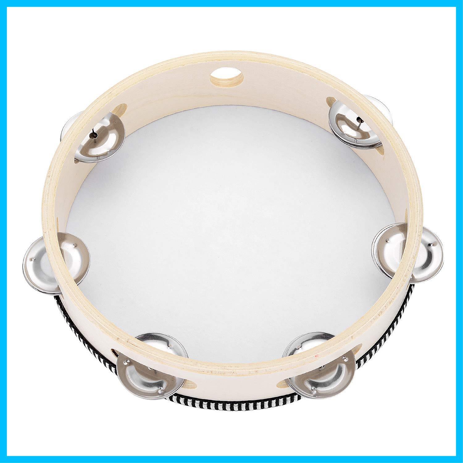 ポータブルタンバリン8インチ、バーチ材 金属製の鐘 打楽器 ギフト、音楽教育ドラム楽器 KTVパーティーのゲーム用 (8インチ)