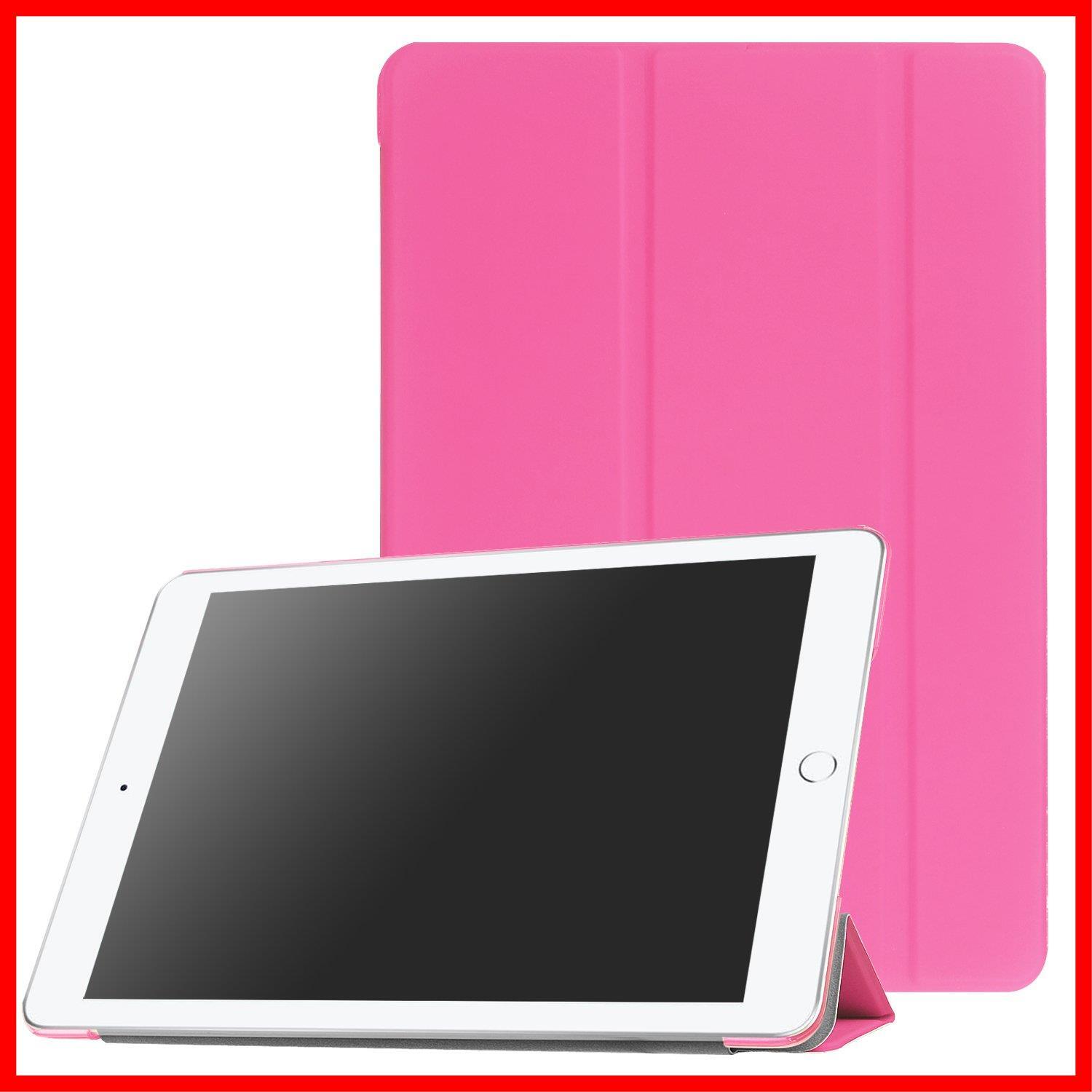 ピーシーエーテック PUレザーケース 超薄 軽量型 スタンド機能 スマートカバー ケース 三つ折 クリアカバー iPad 9.7(2018第6世代) / iPad5(第五世代) / iPad 9.7(2017年型) 用 ピンク