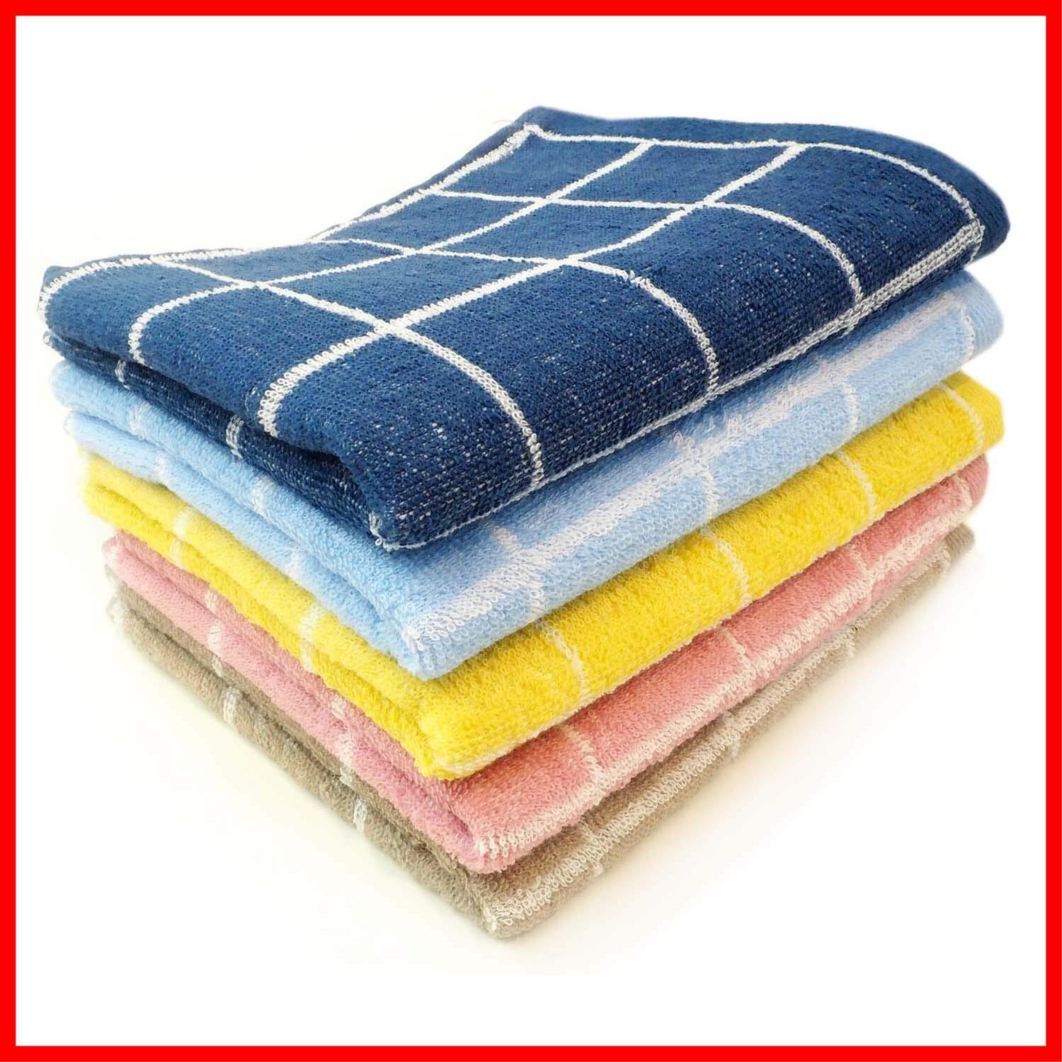 Kosugizen フェイスタオル グラフチェック 5色各1枚入 34×80㎝ 乾きやすい薄手タイプ デイリーユース 5枚セット ZG-2302-5