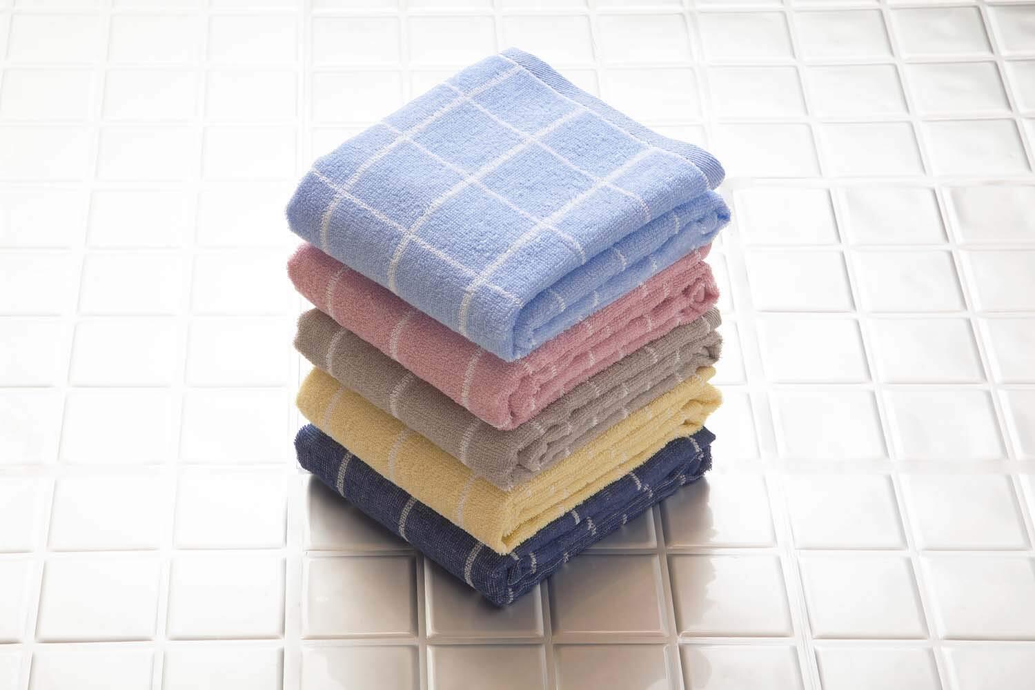 シンプルでスマートなグラフチェックのフェイスタオル。その日の気分で使い分け5色セット!