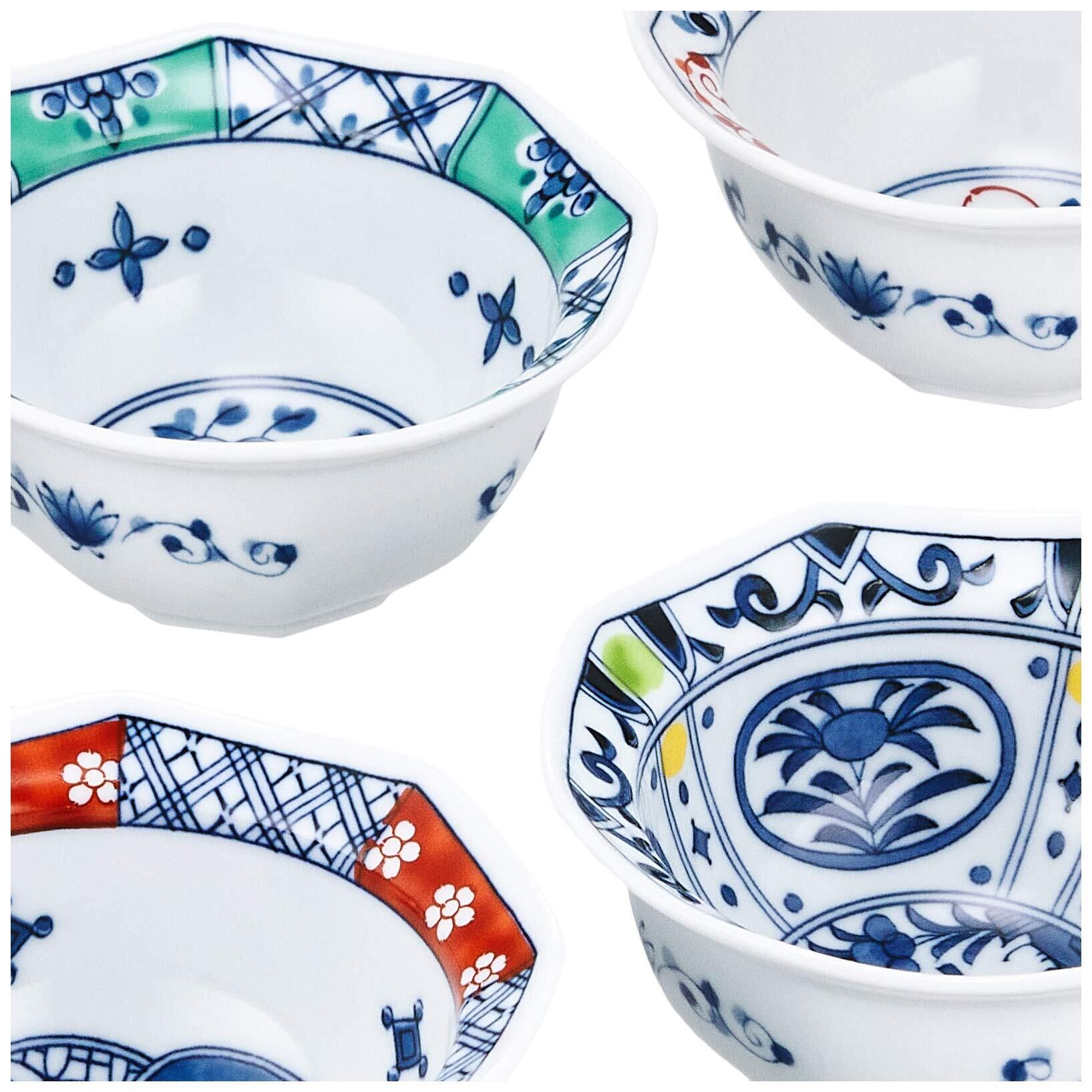 西海陶器 波佐見焼 絵変り 八角小鉢揃 化粧箱入 錦 セット箱入 ホワイト 19544