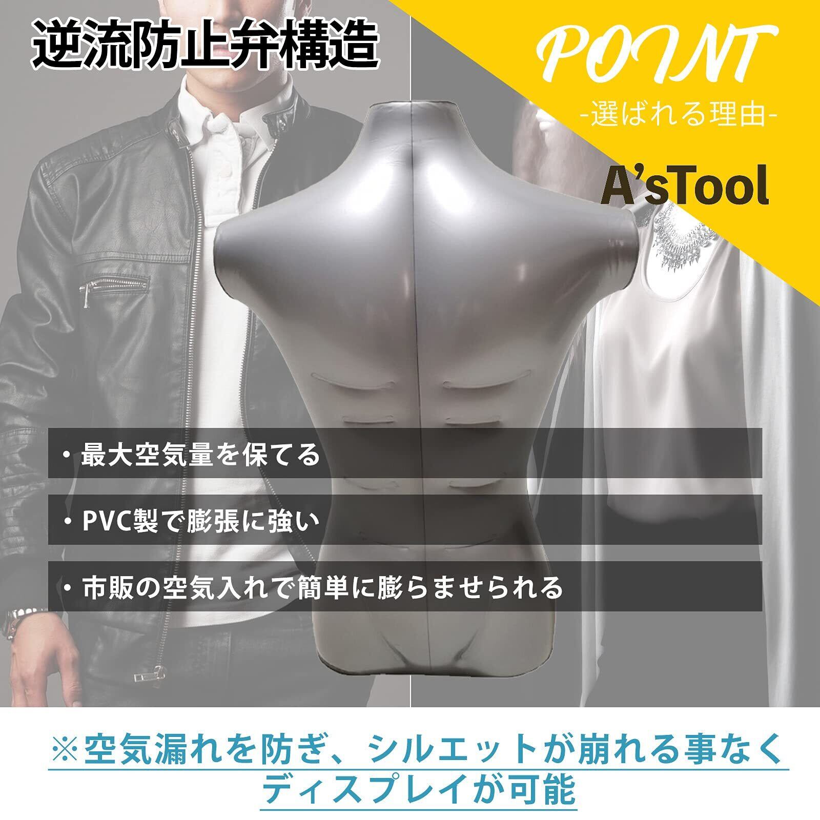 A'sTool エアトルソー トルソー マネキン エアートルソー 空気式 レディース メンズ 子供 全身 上半身 腕 頭 (男性 上半身 腕脚なし)