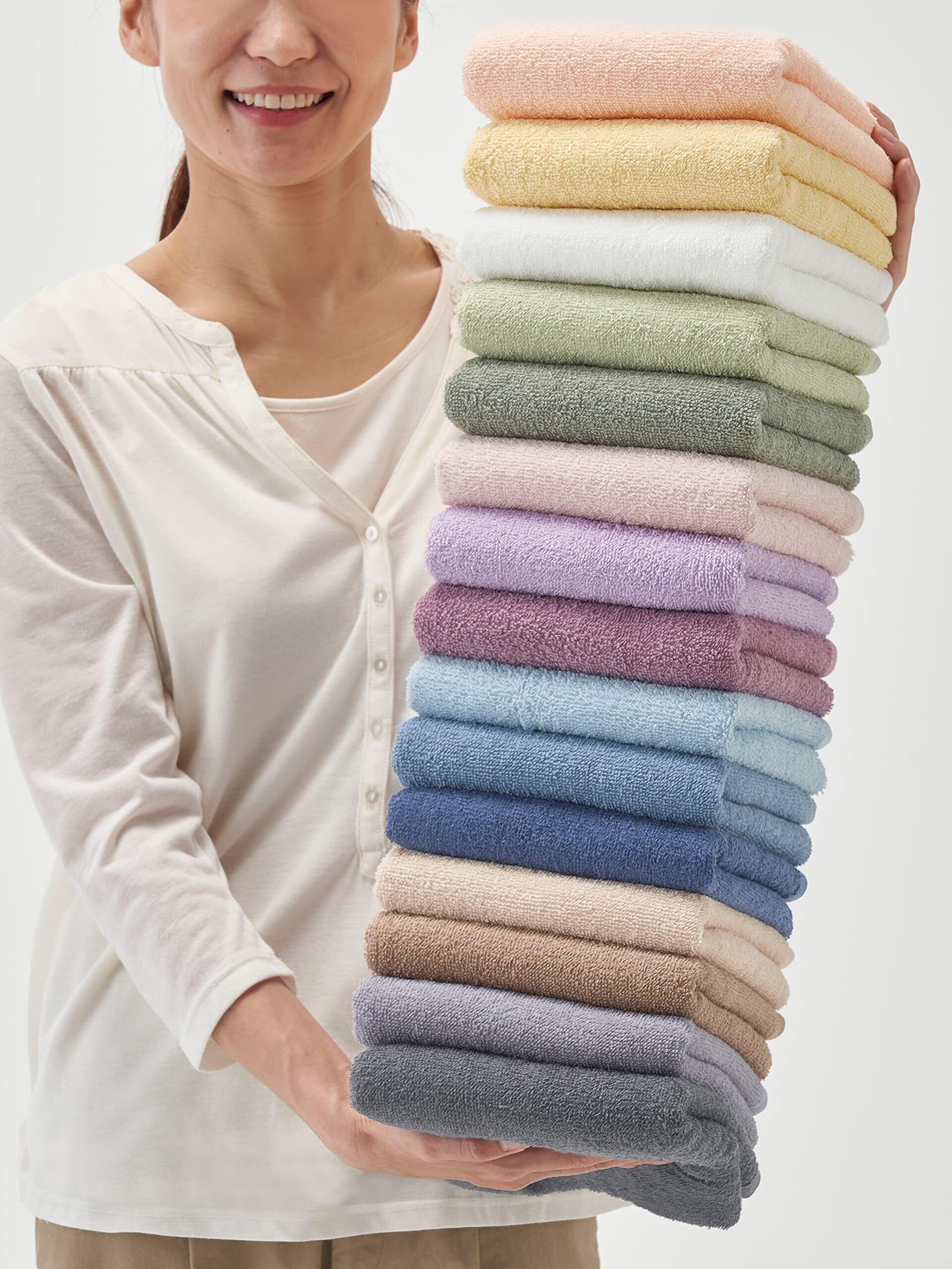 ・“この薄さが"普段使いに最適。軽くて扱いやすく、 使う場所を選ばないので、普段使いのフェイスタオルとしてはもちろん、薄手なので、お風呂などでも絞りやすく、体を洗うボディータオルとしてもお使いいただけます。