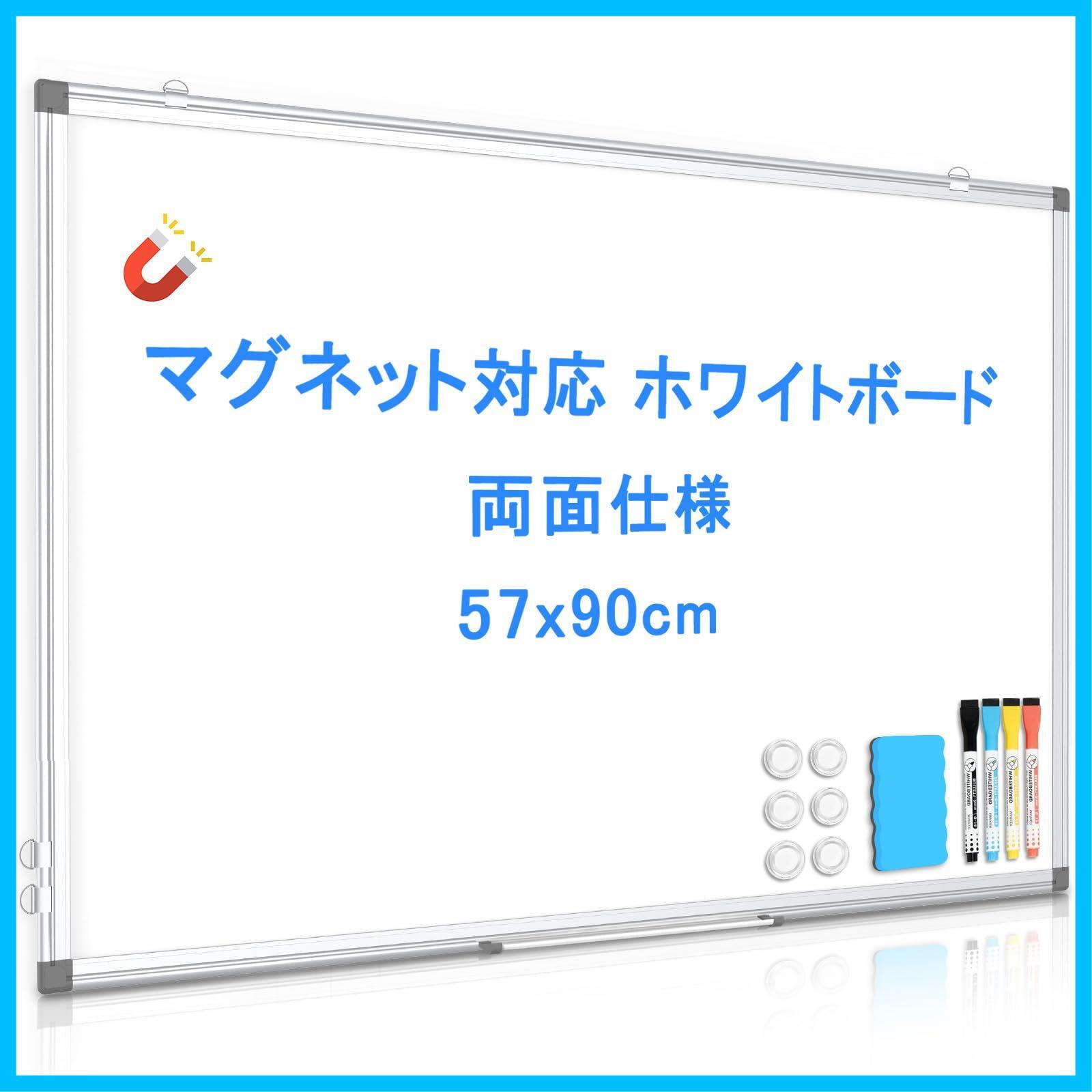 Walspax ホワイトボード 壁掛け マグネットボード 90x57cm ボード 両面使用 アルミフレーム お支度ボード スケジュールボード カレンダー おしゃれ 自宅 家庭用 子供 オフィス用品 マーカー・イレイザー付き
