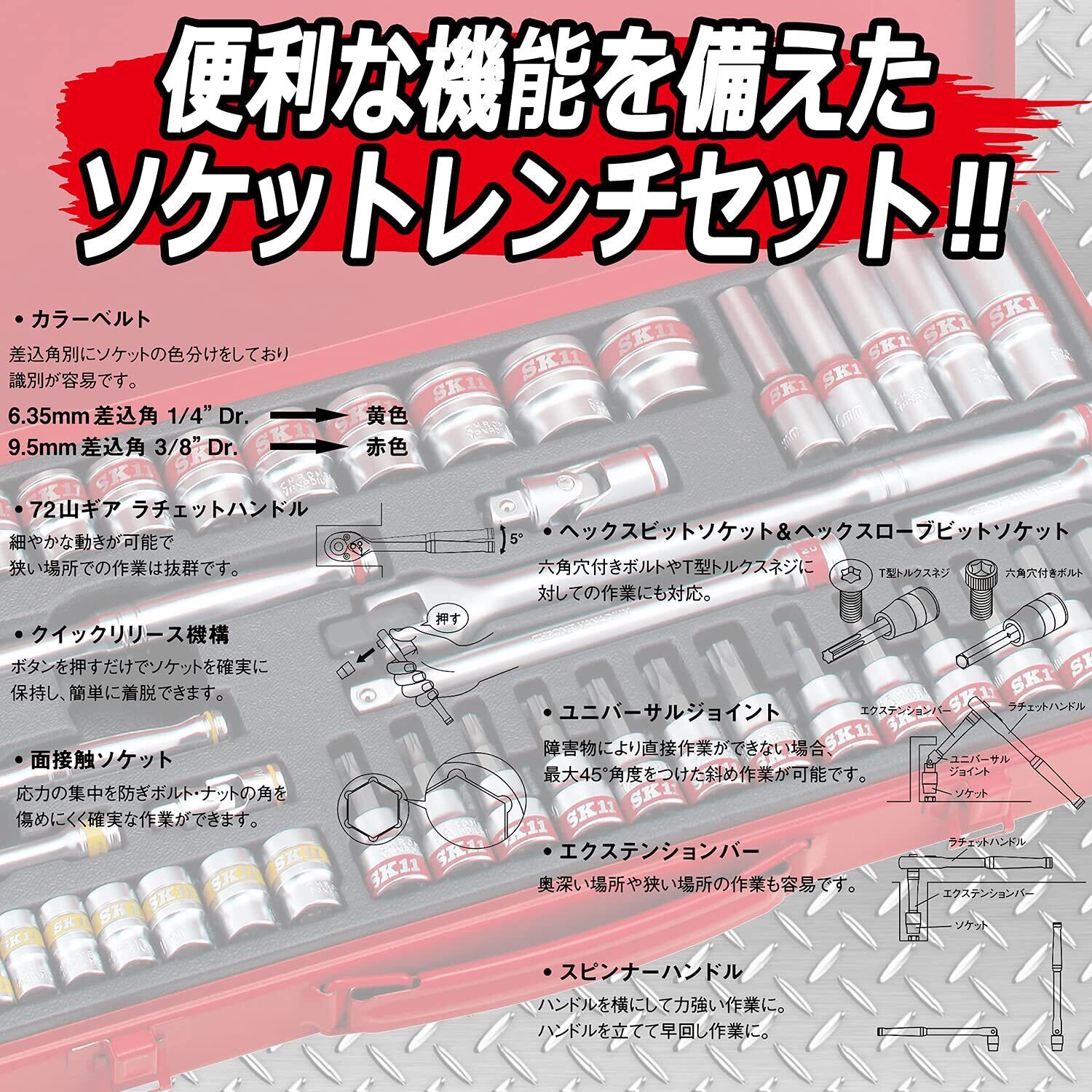 SK11(エスケー11) ソケットレンチセット TS-2352M 差込角:6.3mm 9.5mm 52点 1セット