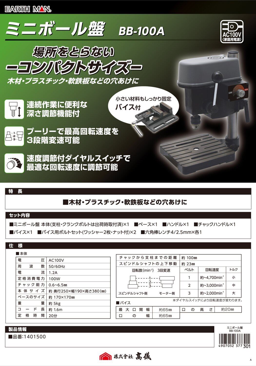 【2022最新】高儀(Takagi) 可変速 ミニボール盤 EARTH MAN BB-100A【コンパクトサイズ】【固定バイス付き】【回転速度3段階】【深さ調節】 ボール盤 卓上ボール盤 卓上ドリル スタンド 旋盤 フライス盤 ミニボール盤 ボール盤小型 卓上ドリル ボール盤 | metta