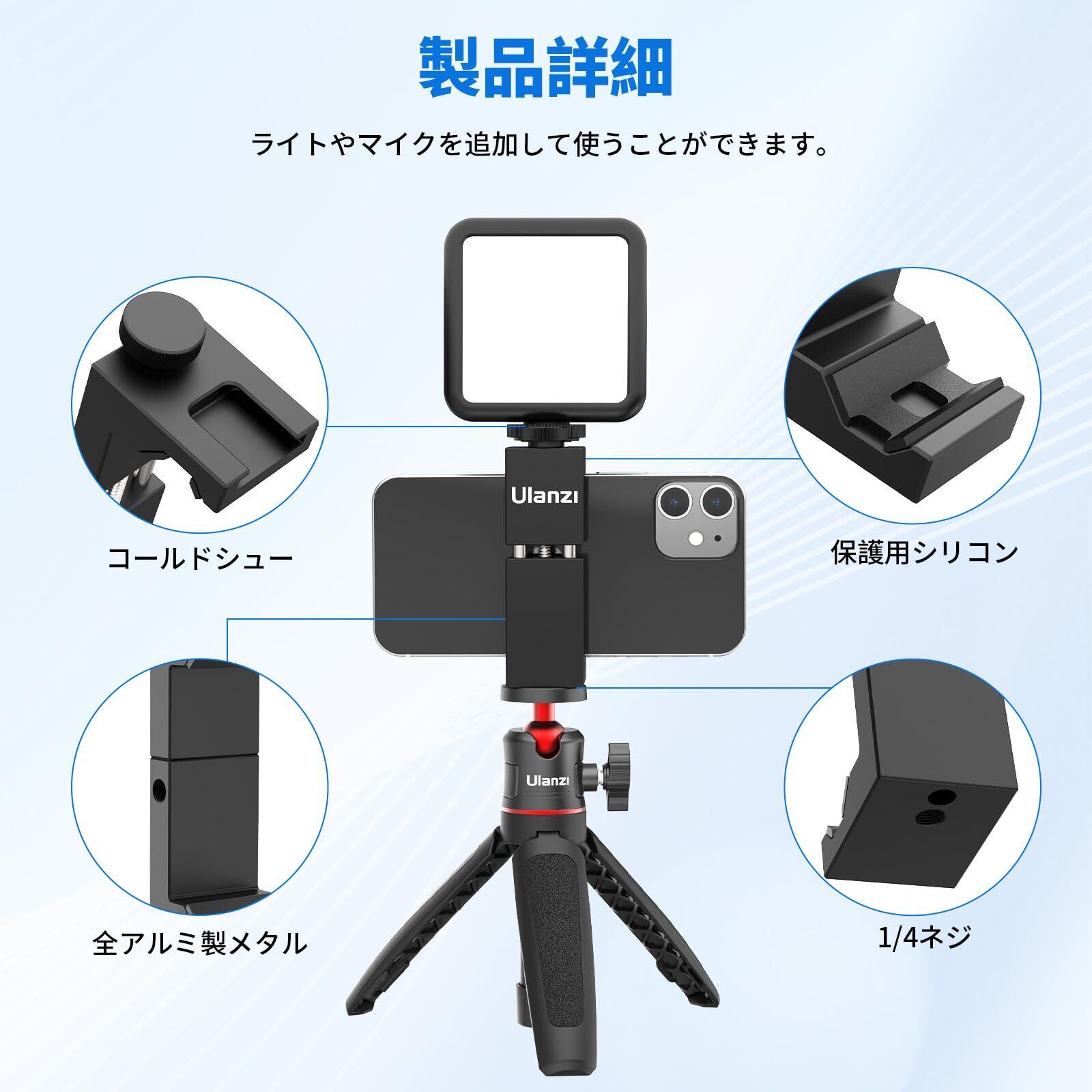 Ulanzi スマホホルダー 三脚スマホホルダー 全金属製 スマートフォン三脚マウント コールドシュー付き 横も縦も撮影可 三脚用 スマホクリップ web会議 宅録生放送 TikTok Vlog YouTube instagram IGTV 用スマホホルダー iPhone14&13&12/ 14&13&12 Pro/ 14&13&12 Pro Max Samsung に使用 1/4インチネジ穴 Android/iPhone/三脚/自撮り棒/カメラ対応 落下防止 (モデル ST-02S)