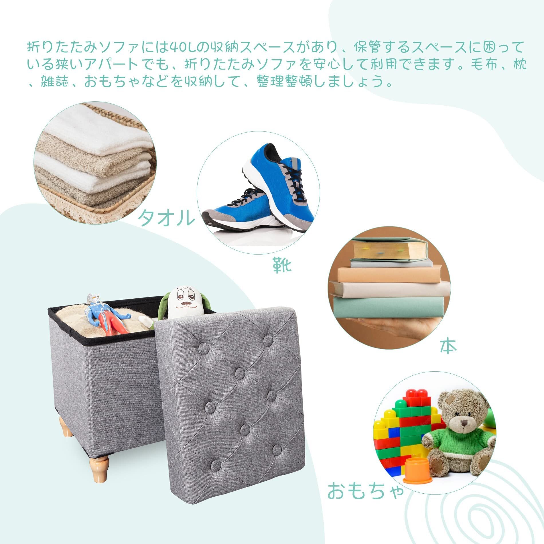GLAXYFUR 収納スツール オットマン 脚付き 折りたたみ式 ストレージチェア ボックススツール 椅子 収納 フットレスト リネン生地製 リビング/玄関/寝室に適用38*32*39cm (ライトグレー)
