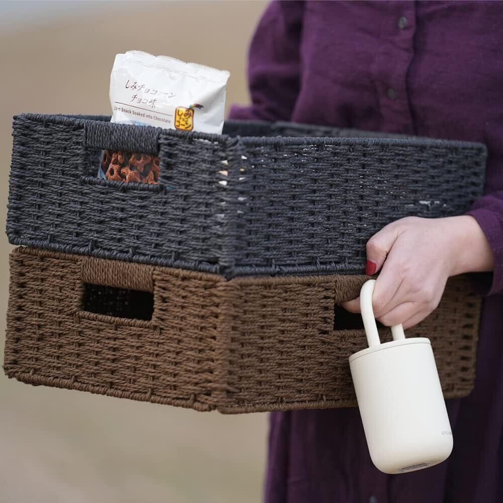 【2022最新】収納バスケット 折り畳み式 手編み 2個入り 幅38×奥行26×高さ24cm ペーパーかご 持ち手付き 収納バスケット ボックス 籠 おもちゃ 小物収納 業務用 幼稚園 卓上 室内 屋外 小物ケース 大きい 天然素材 おしゃれ | metta