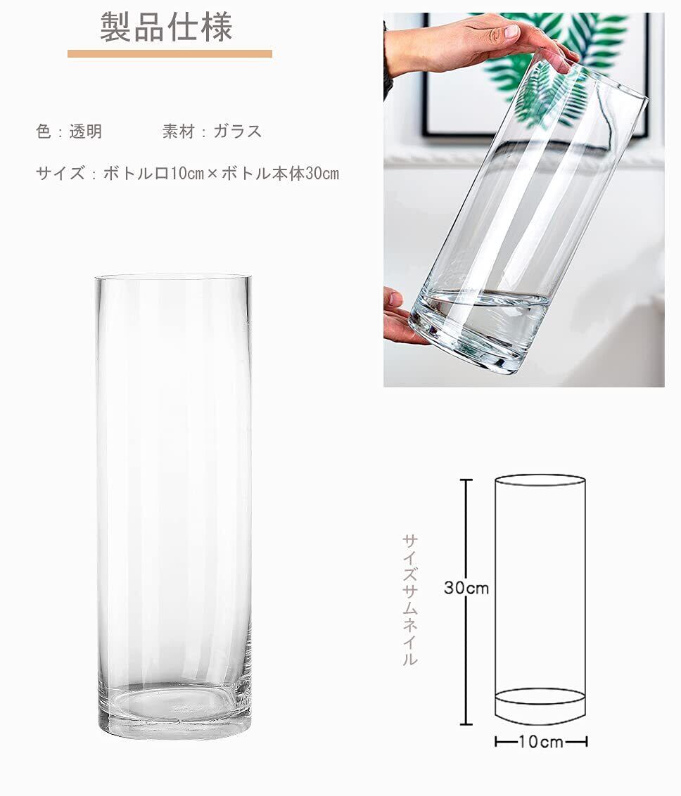 円柱 花瓶 大 フラワーベース ガラス 一輪挿し北欧 透明 花器 シンプル クリア 北欧 透明 大きな インテリア 室内 大きい 飾り (直径10cm 高さ30cm)