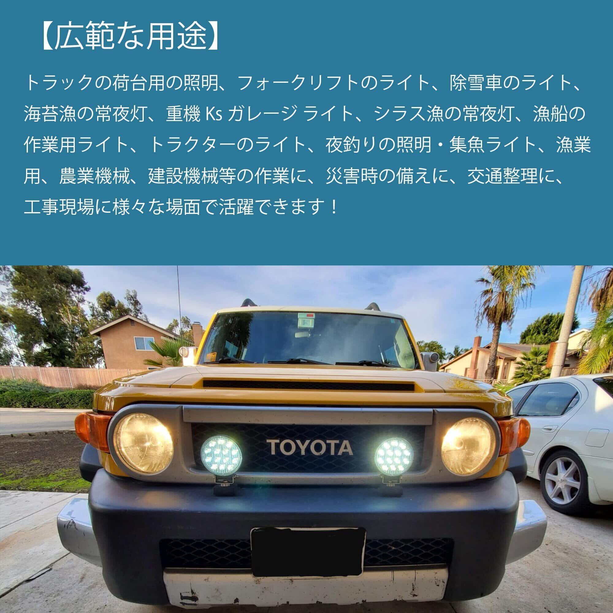 【広範な用途】トラックの荷台用の照明、フォークリフトのライト、除雪車のライト、海苔漁の常夜灯、重機 Ks ガレージ ライト、シラス漁の常夜灯、漁船の作業用ライト、トラクターのライト、夜釣りの照明・集魚ライト、漁業用、農業機械、建設機械等の作業に、災害時の備えに、交通整理に、工事現場に様々な場面で活躍できます!