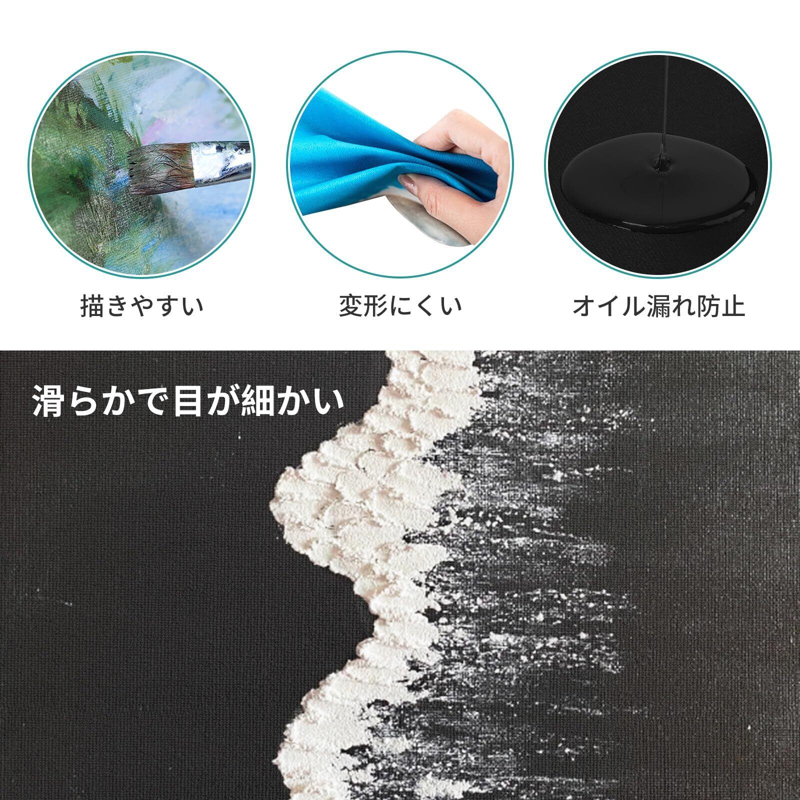 【油彩画・アクリル画兼用】耐油性のある紙を両面貼り。油彩画では一般的な紙のように油分を吸い込まず、ズムーズに描けます(キャンバス柄面ではある程度浸透します)。 厚塗りをする油彩画習作、アクリル画用途に最適です。