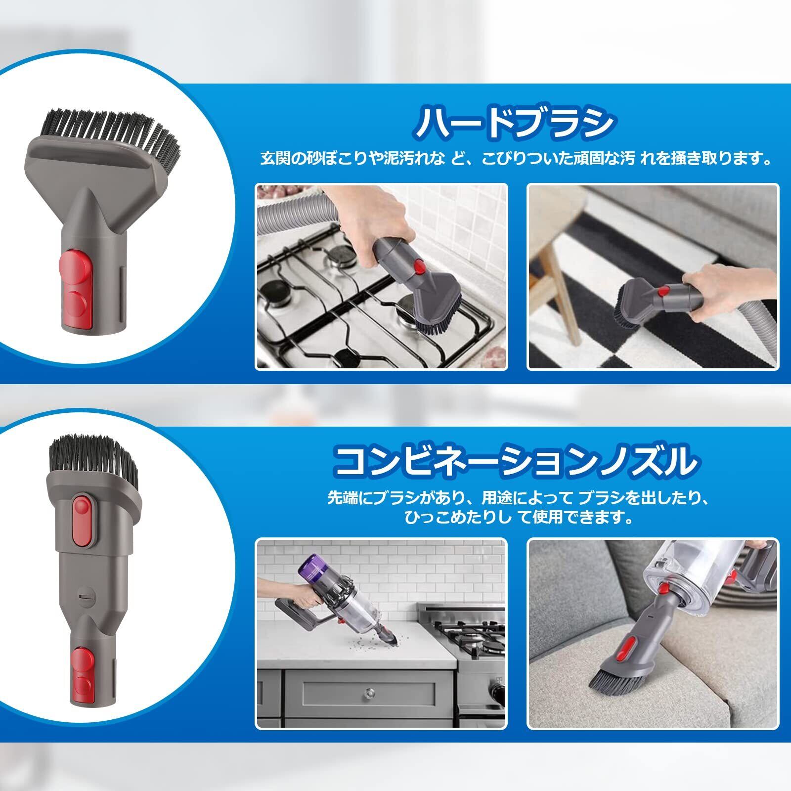 【対応機種】:ダイソン V7(SV11)、V8(SV10)、V10(SV12)、V11(SV14)、V15(SV22)シリーズ対応のアタッチメントの互換ノズルセットです。 ※その他の機種は非対応になりますのでご注意ください。