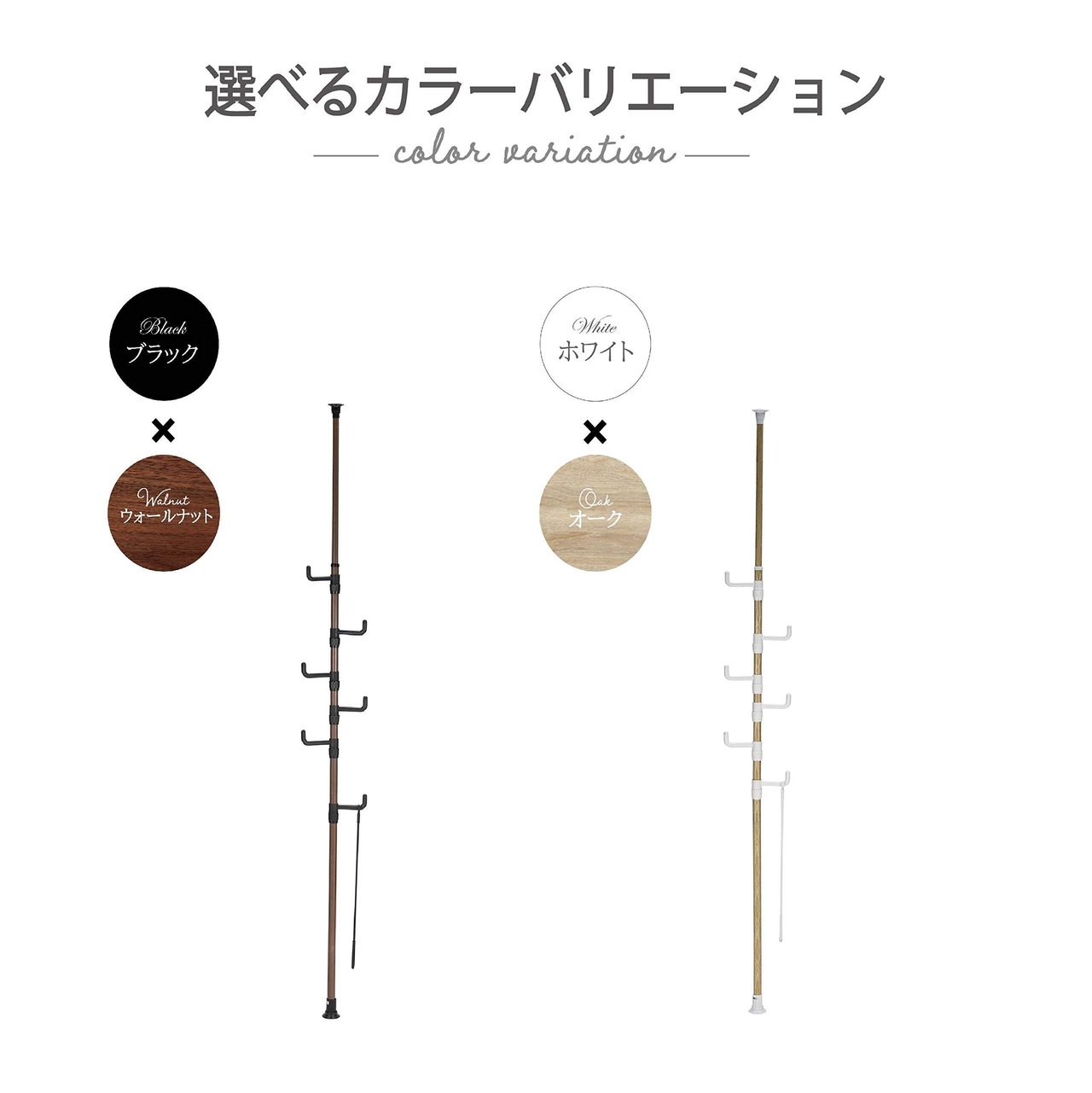 【サイズ】33×33×220~280㎝ 【商品重量】2.5㎏ 【耐荷重】30㎏/フック1個あたり5㎏
