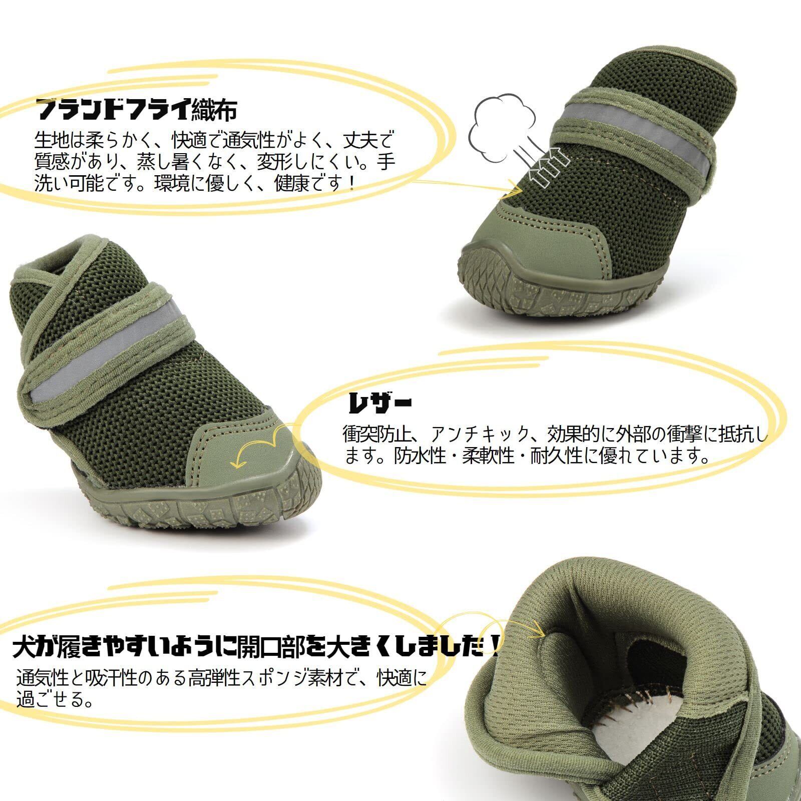 【特価商品】LIKOKLIN 犬靴 犬用メッシュシューズ ドッグブーツ ドッグくつ 小型犬 反射テープ付き 滑り止め 肉球保護 脱げにくい 散歩 通気性 犬用靴 犬くつ 犬のくつ 小型犬 中型犬 4個入り サイズがやや小さい グリーン (1#)