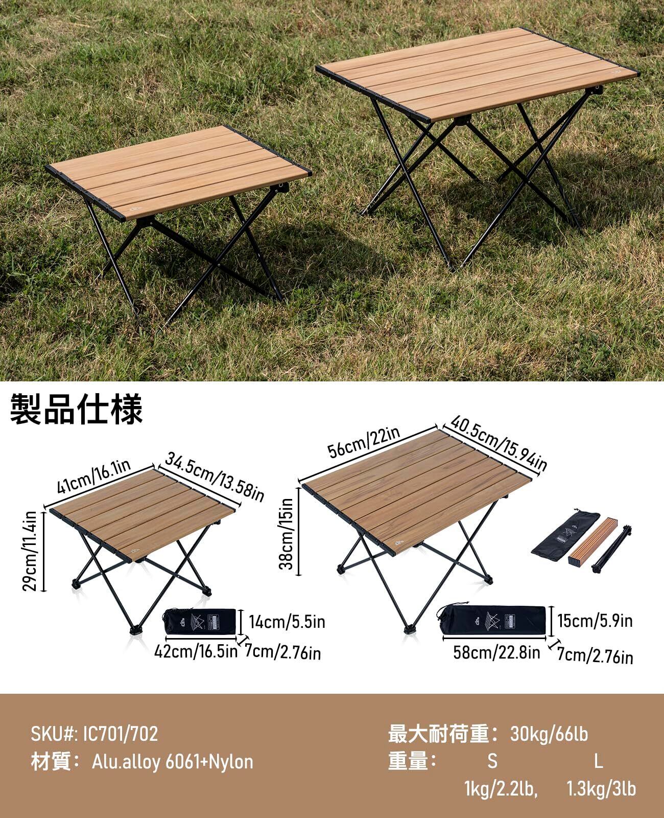 iClimb アウトドアテーブル ミニローテーブル キャンプ テーブル 折畳テーブルアルミ製 耐荷重30kg 超軽量 コンパクトソロキャンプ BBQ 登山 ツーリング 収納袋付き (Nature-L)