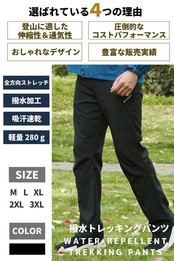 【快適に登山ができる伸縮性&速乾性】登山に特化したトレッキングパンツです。険しい山登りの動きにも対応できるストレッチ性の高さと汗をかいてもすぐに乾く速乾性の高さを備えた登山ズボンです。