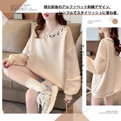 【ゆったりレディース長袖パーカー】 秋冬コーデも大人かわいく決まる,はこれで決まり!オシャレな大人長袖パーカー。リラックス感のある着心地で、ロングシーズン使える万能クルーネックプルオーバー。襟元前後のアルファベット刺繍デザイン,シンプルでスタイリッシュに重ね着。リブクルーネック、袖口や裾もリブデザインでシンプルでスタイリッシュ着心地で気軽に着て頂けます、今季マストハブなトレーナーです。肌触りの良い保温性に優れたプルオーバーは、柔らかく軽い着心地があると同時にボリューム感を生み出します。大きいサイズデザインなで、着痩せ効果があり、女性の可愛らしさを引き出してくれるレディーストレーナーです。キャップやニット帽と合わせるカジュアルコーデがオススメです!秋から春先にかけてロングシーズン大活躍な長袖!
