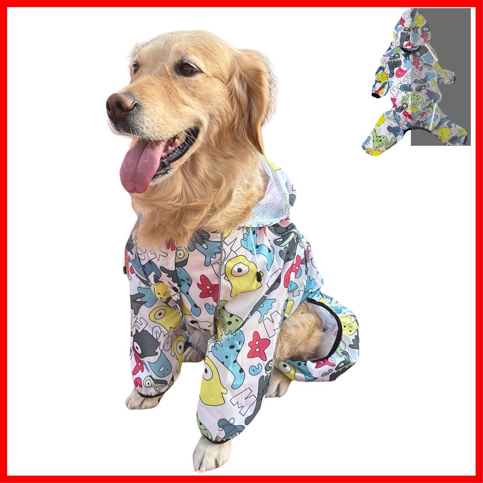 LIKOKLIN 犬用レインコート 犬カッパ 雨具 通気 帽子付き 反射条付き 散歩用犬服 着脱簡単 ド 犬ジャケット ペット雨具 中型犬 大型犬 着脱簡単 ド 犬ジャケット ペット雨具 ホワイト ,ブルー (ホワイト【四足用タイプ】 M)