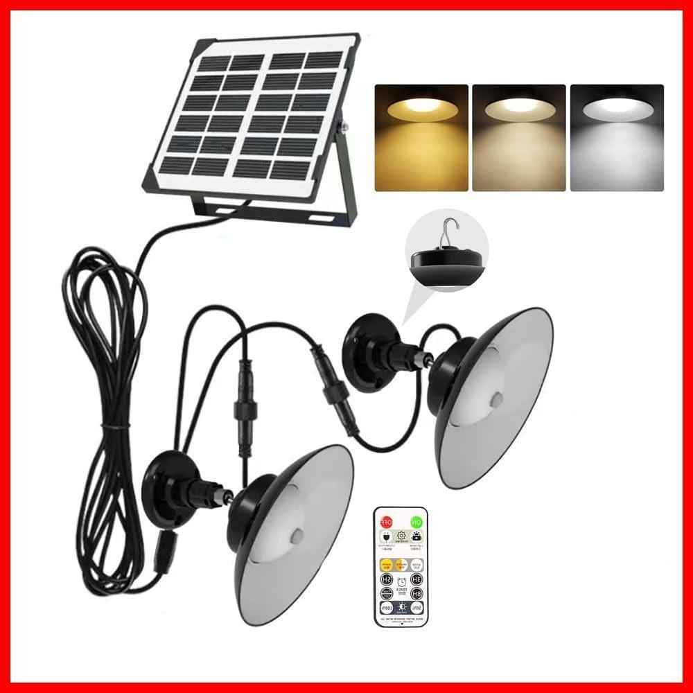 Aokyoung LEDソーラーライト ペンダントライト 分離型2灯 3色温度 光センサー付き 自動点灯/消灯 5m延長ケーブル IP65防水 常夜灯 防犯ライト ナイトライト 玄関先/庭/駐車場/ガーデン等屋内外に適応 取付簡単 (電球色 昼白色 昼光色)