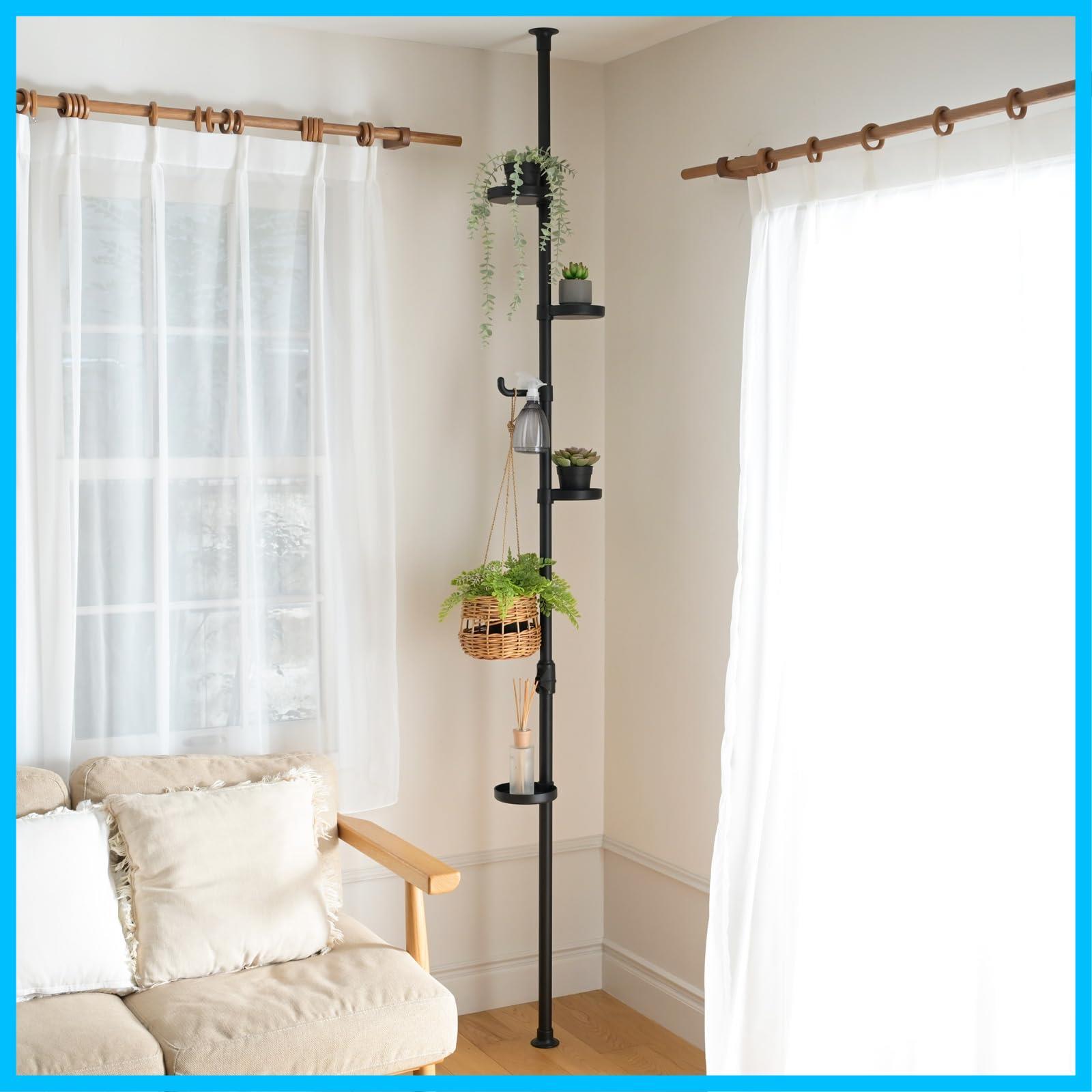 【特価セール】山善(YAMAZEN) 突っ張り ラック ポールハンガー プランタースタンド 設置簡単 (トレー4個・フック1個付き) ワンタッチ突っ張り (実用新案取得済) 幅30×奥行30×高さ190-260cm フラワースタンド ボタニカル 室内 組立品 マットブラック WJE-12RM(MBK) | metta