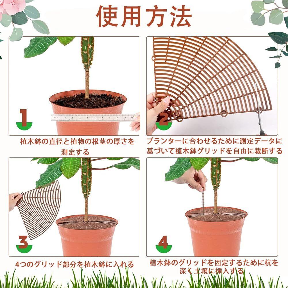 【カット可能設計】:サイズの異なる植木鉢に合わせて、必要に応じて自由にカットすることができます。長さ10 cmのトゲ付き杭は、グリッドが崩れたり揺れたりするのを防ぐために、土壌に深く安定して挿入することができます。