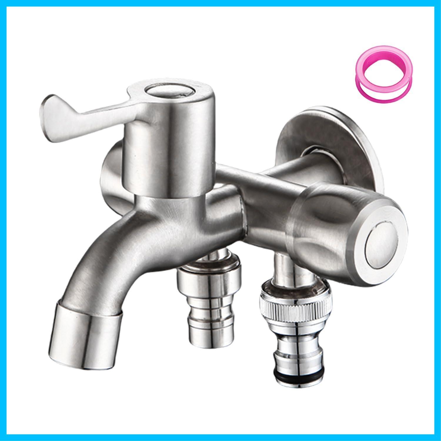 【漏水防止&独立したハンドル】蛇口出口にはフィルターを採用し、水流を柔らかくするとともに、蛇口の水漏れを効果的に防ぎます。独立したハンドルなので一方を洗濯機、もう一方を散水などの給水ホースに利用できます。
