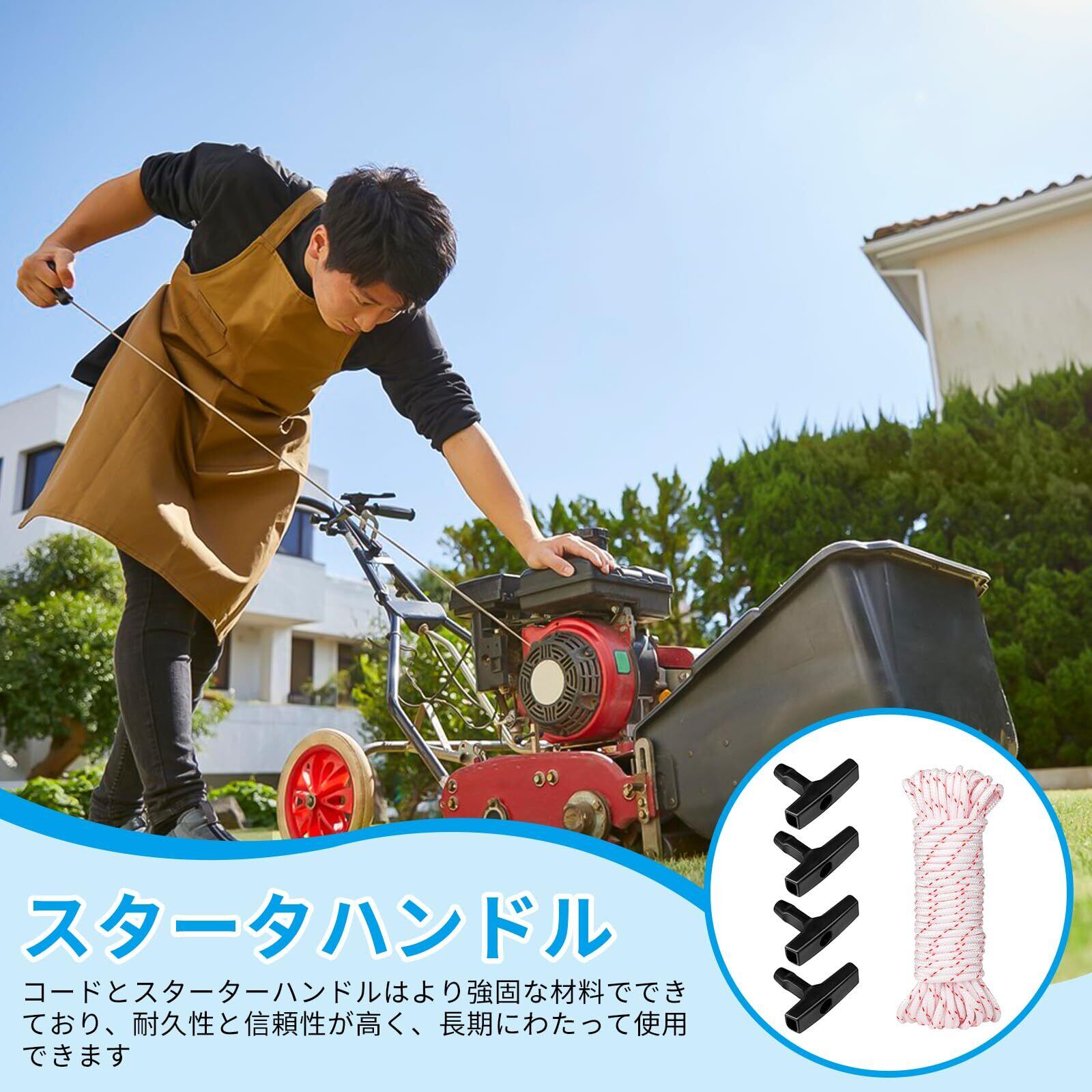 RICISUNG リコイルスターターロープ スターターロープ 長さ10M 直径約4mm ナイロン製 芝刈り機 トリマー チェーンソー 生け垣 発電機など 芝刈り機スターターロープ 屋外電動工具ストリング 耐久 耐摩耗性 リコイルスタータープルハンドル付き 4個