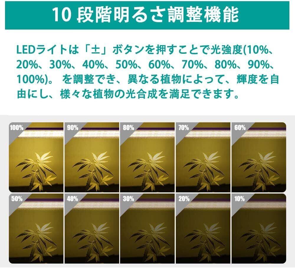 【10段階調光可能と三つ点灯モード】 LEDライトは「±」ボタンを押すことで光強度(10%-100%)を調整できます。そして三つの点灯モード(暖白色/白赤色/暖白色と白赤色)があります。異なる段階の植物によって、輝度と点灯モードを自由に選択できます。様々な植物の光合成を満足できます