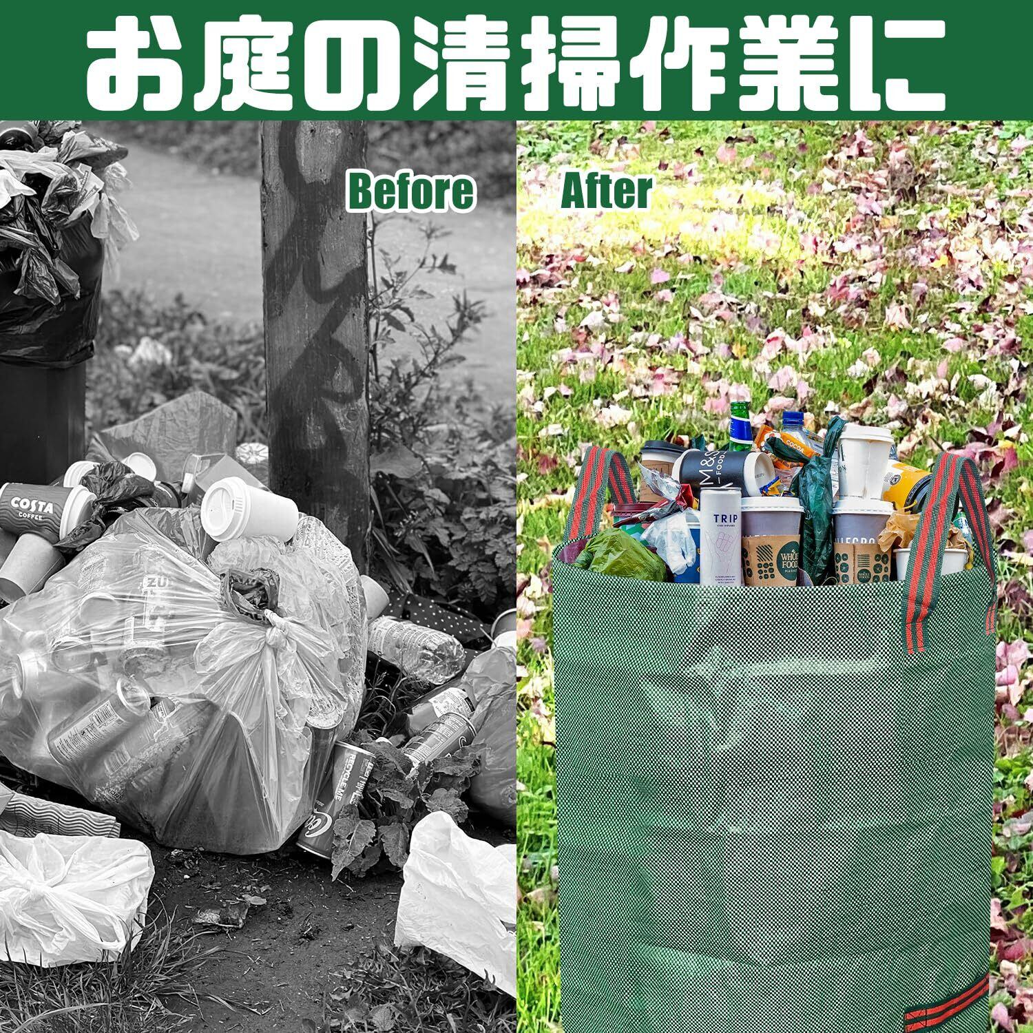 【使いやすい】簡易型ガーデンバッグ、使いやすい。素早く展開・収納できるので作業効率を大幅に高めます。二重に縫製された持ち手、破断に強い。幅広で手の疲れ感を効果的に解消されます。バッグの底側に持ち運び用ハンドルが付いているため、ものの運搬がしやすくなります。雑草、草刈り、その他の庭廃棄物の収集、大規模な庭や農地作業に便利!