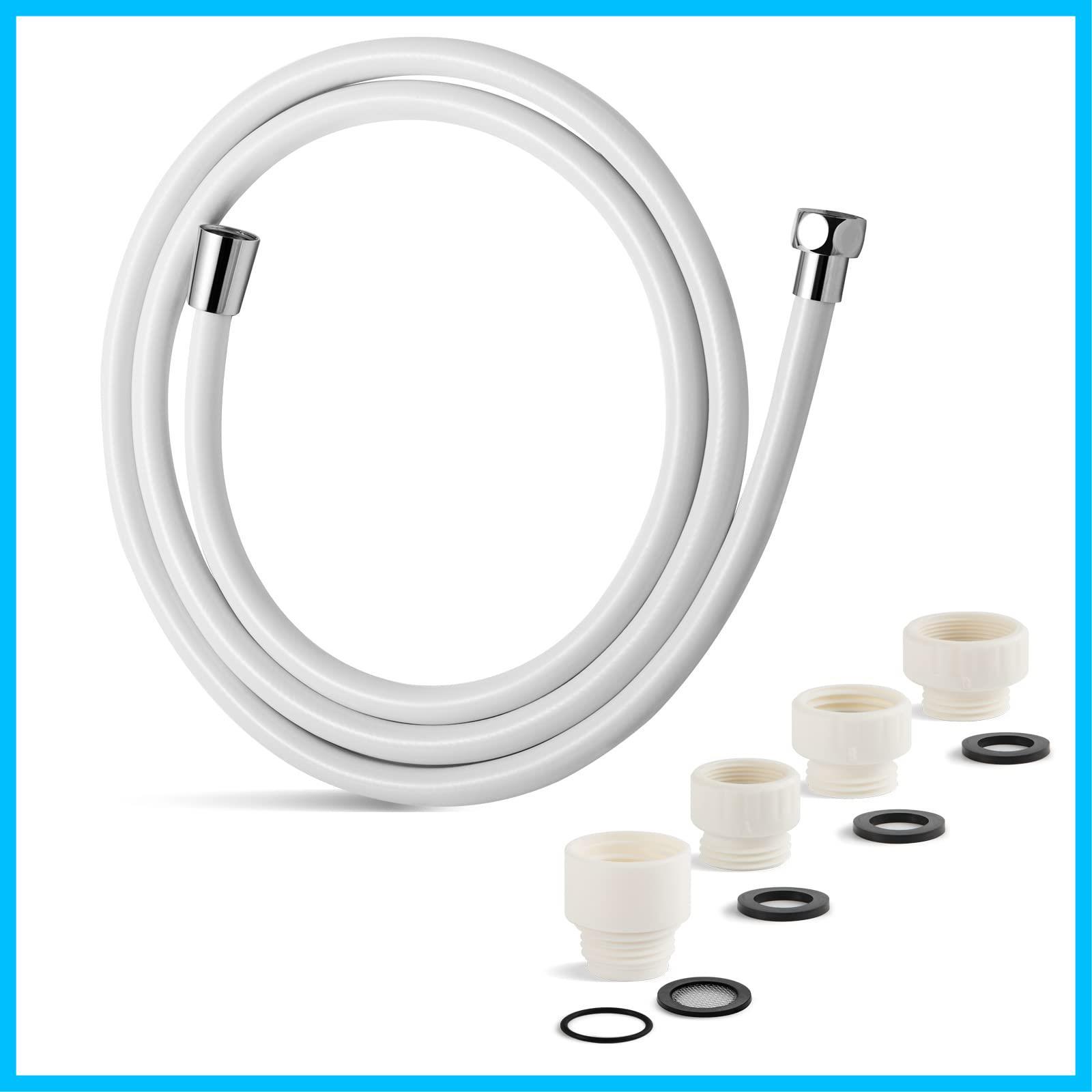 OFFO シャワーホース アダプター付き 1.6m 柔らかい ねじれない しゃわーほーす 低臭 耐圧 漏れ防止 360°自由回転 取付簡単 ホワイト