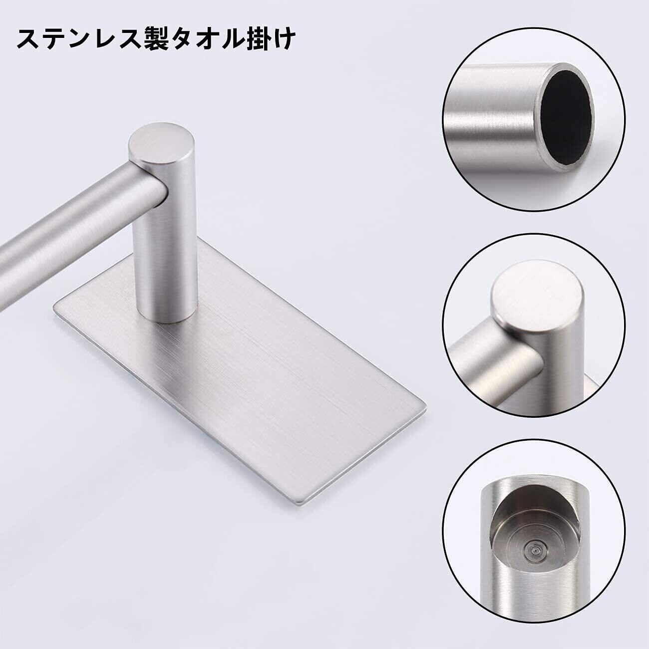 タオル掛け 粘着 タオルハンガー ステンレス タオルかけ 45cm 洗面所 キッチン 風呂場 浴室用タオルバー 壁 穴あけない ふきんかけ フック タオル収納