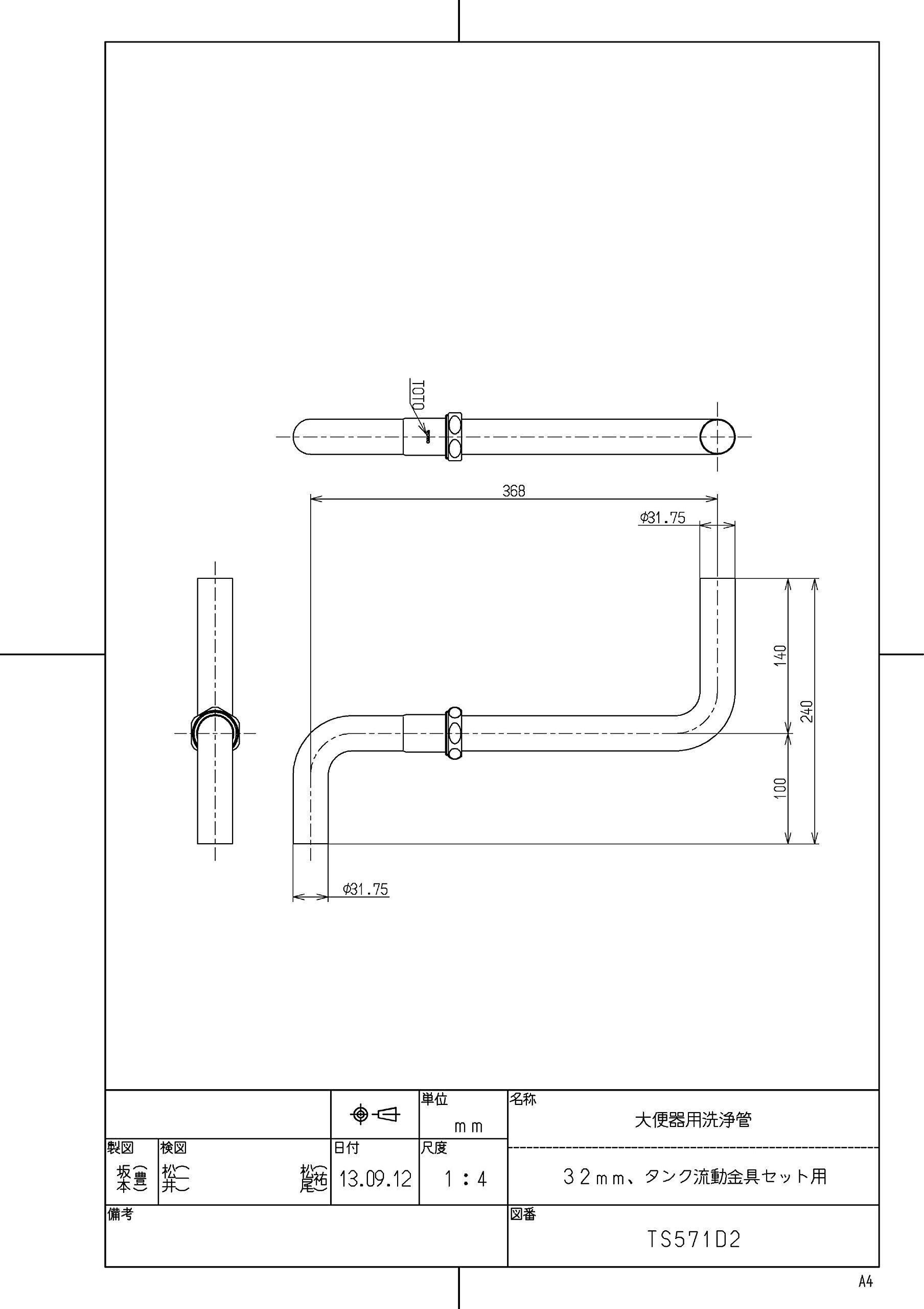 TOTO 大便器用洗浄管(32mm、タンク流動金具セット用) TS571D2