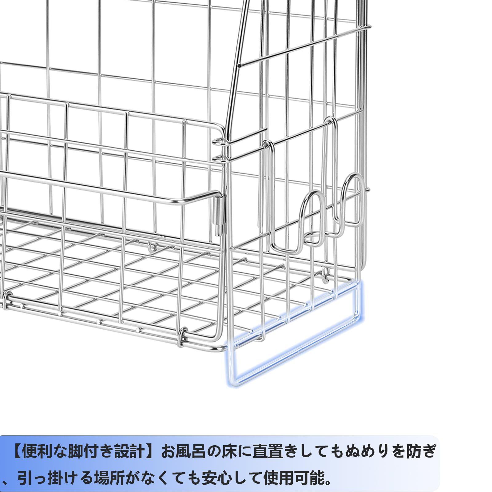 Raihu お風呂 ラック 吊り下げ お風呂 バスケット シャンプー カゴ 吊り下げ 18/8ステンレス製 タオルハンガー/小物フック付き 幅30×奥行14.5×高さ39cm