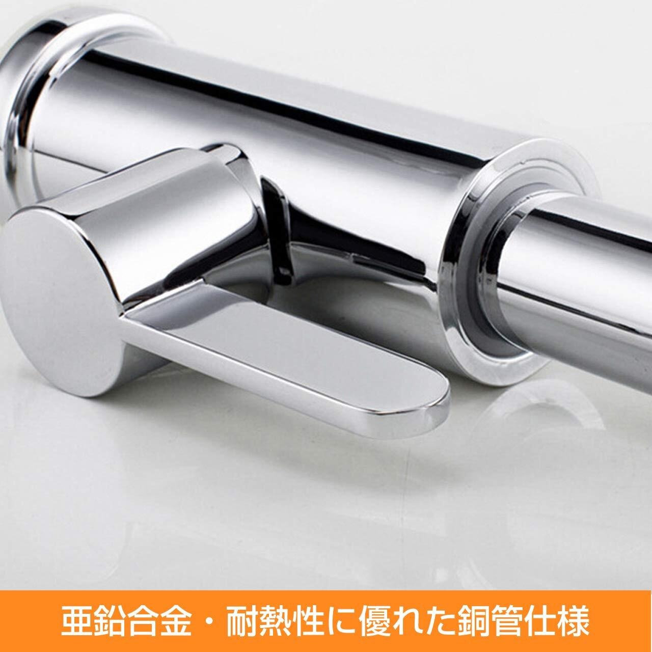 シンプルでスタイリッシュなデザインなのでどのような台所や洗面台、手洗いボウルなどにも設置しても違和感なく調和します。材質も耐衝撃性に優れた亜鉛合金で使い減りせず、末永くご使用いただけます。