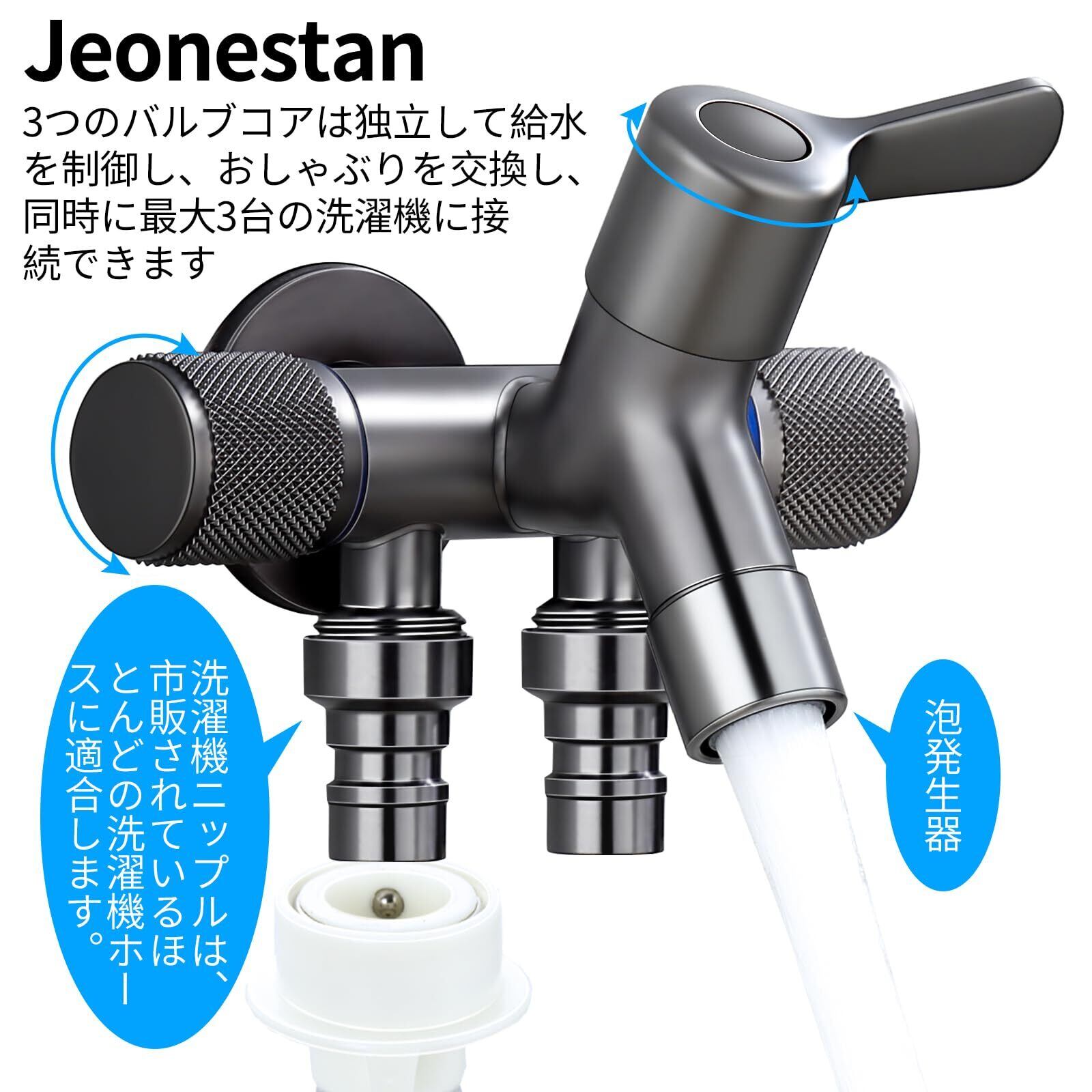 Jeonestan 3口水栓 洗濯機・ガーデニング・散水ホース同時接続対応 ステンレス製 防錆・耐久型 3分歧蛇口 G1/2汎用接続口 壁付け 取付穴径20mm