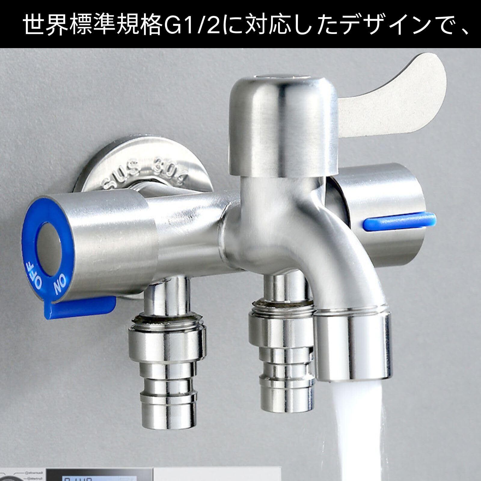 世界標準規格G1/2に対応したデザインで、ほとんどの家庭用水道に完璧にフィット。洗濯機、お風呂、屋外での散水や洗車など幅広い用途に使用可能です。