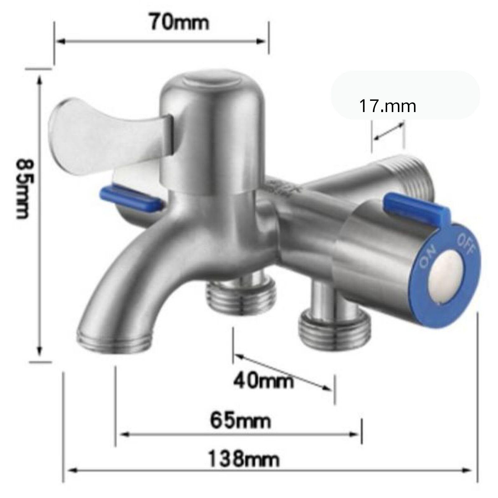 重量約260gで、パイプ径20mm、シルバー×ブルーのカラーが特長。さらに、アダプター接続が可能な万能水栓金具ですので、洗濯機蛇口分岐や分岐水栓としても最適です。