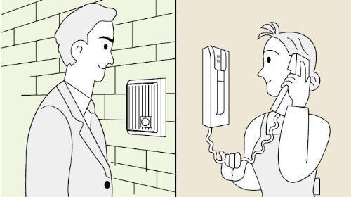 ●玄関子機と親機のシンプルセット。玄関子機は雨にも強い防雨形でぬれても大丈夫