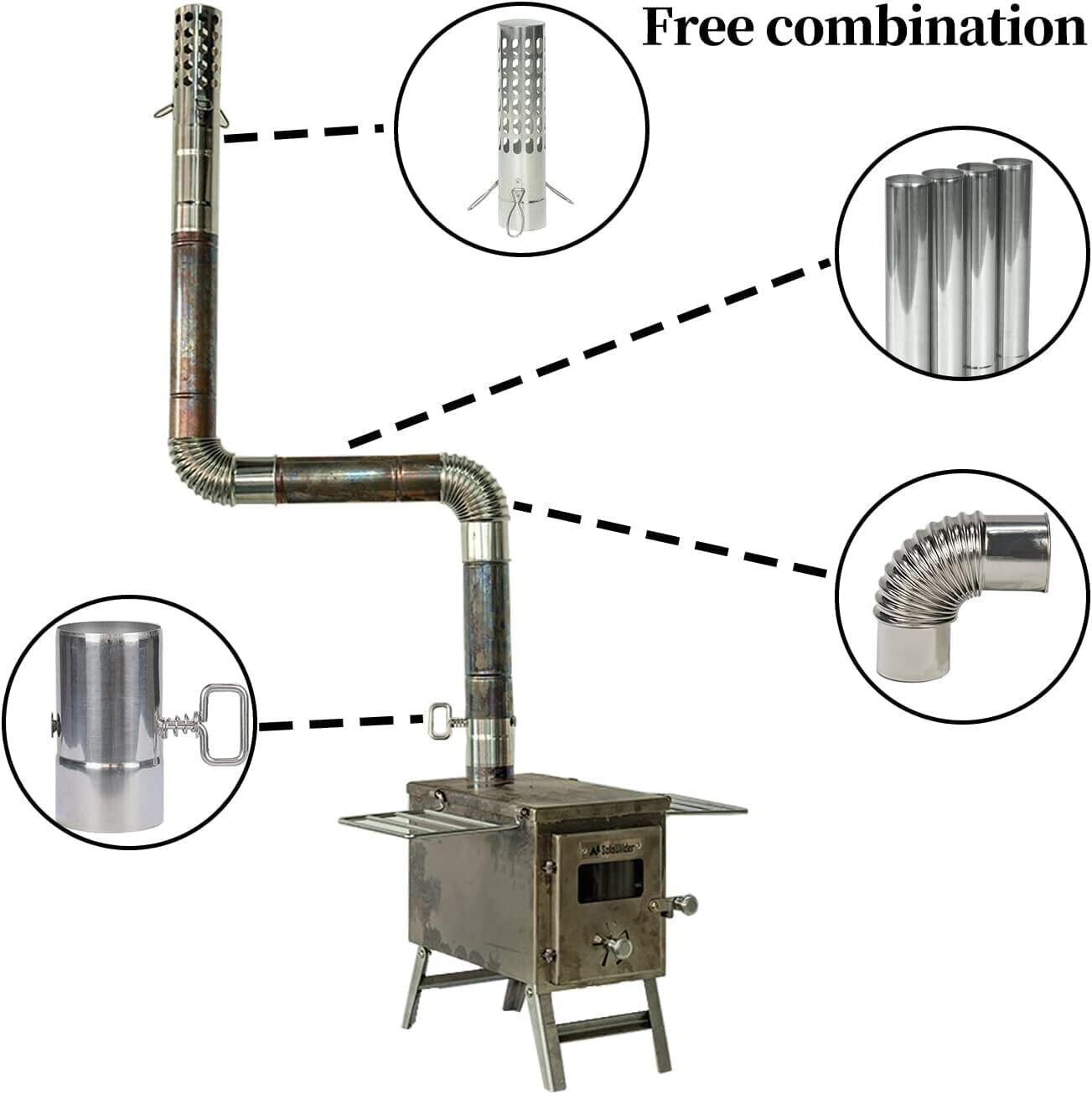 スパークアレスター 60mm 煙突、ステンレス鋼の煙突、炉管、煙突パイプ、屋外薪ストーブアクセサリー、キャンプテント用屋外煙突パイプ、ャンプストーブアクセサリー、直径6 cm 直管4本