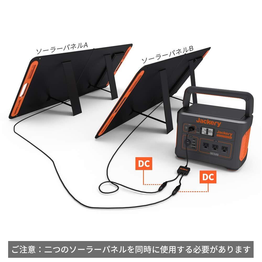 【Jackeryポータブル電源1000専用ケーブル】2つのJackeryソーラーパネル100wを並列接続してJackeryポータブル電源 1000を充電することが可能です。約8時間で満充電が可能です。また、ポータブル電源1000は同型番のSolarSagaのみ並列接続可能です。