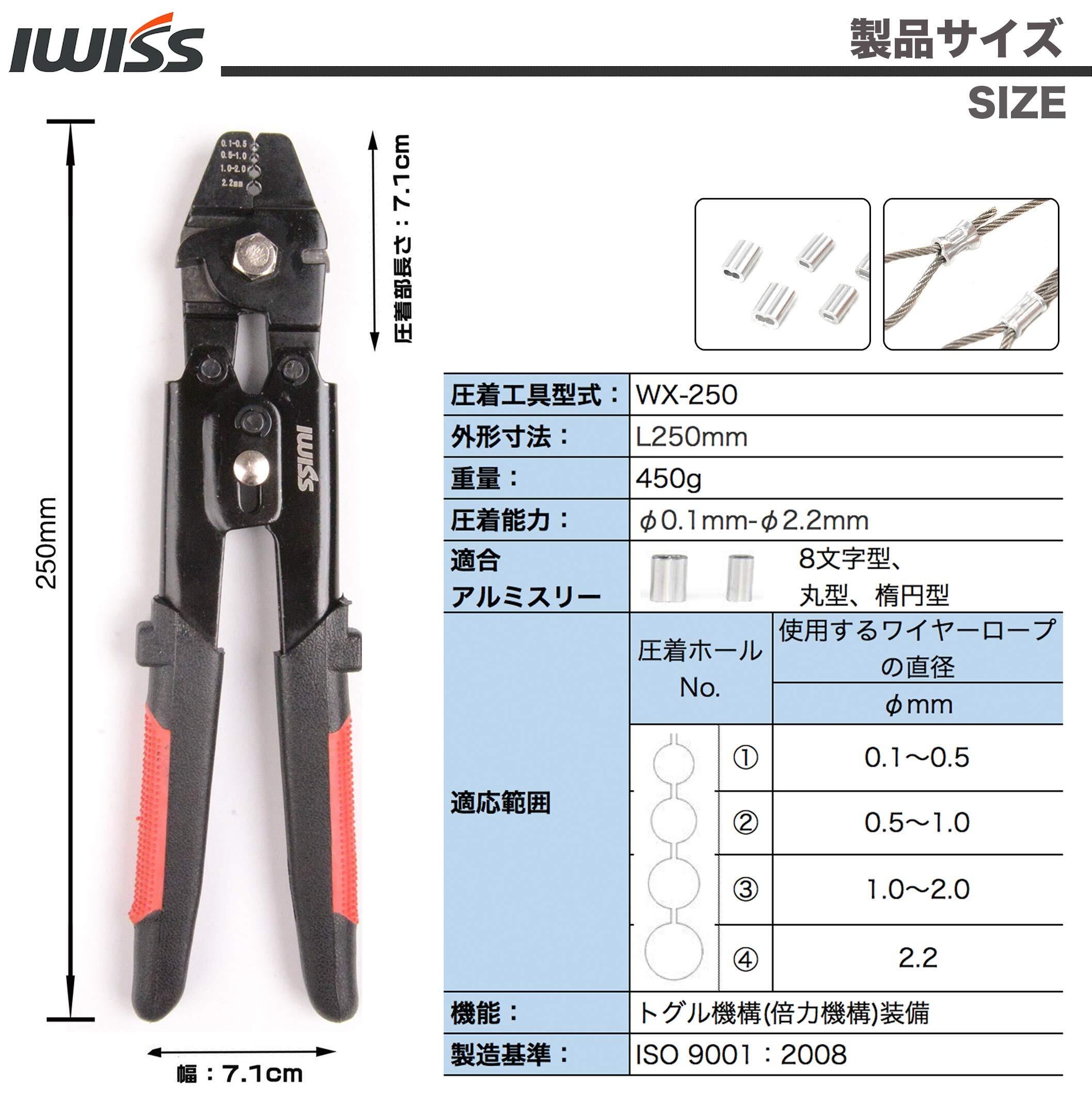 アイウィス(IWISS) ワイヤークランプカッターワイヤーロープカッター アルミスリーブ かしめ機 φ0.1mm-φ2.2mm圧着 WX-250BK 正規品