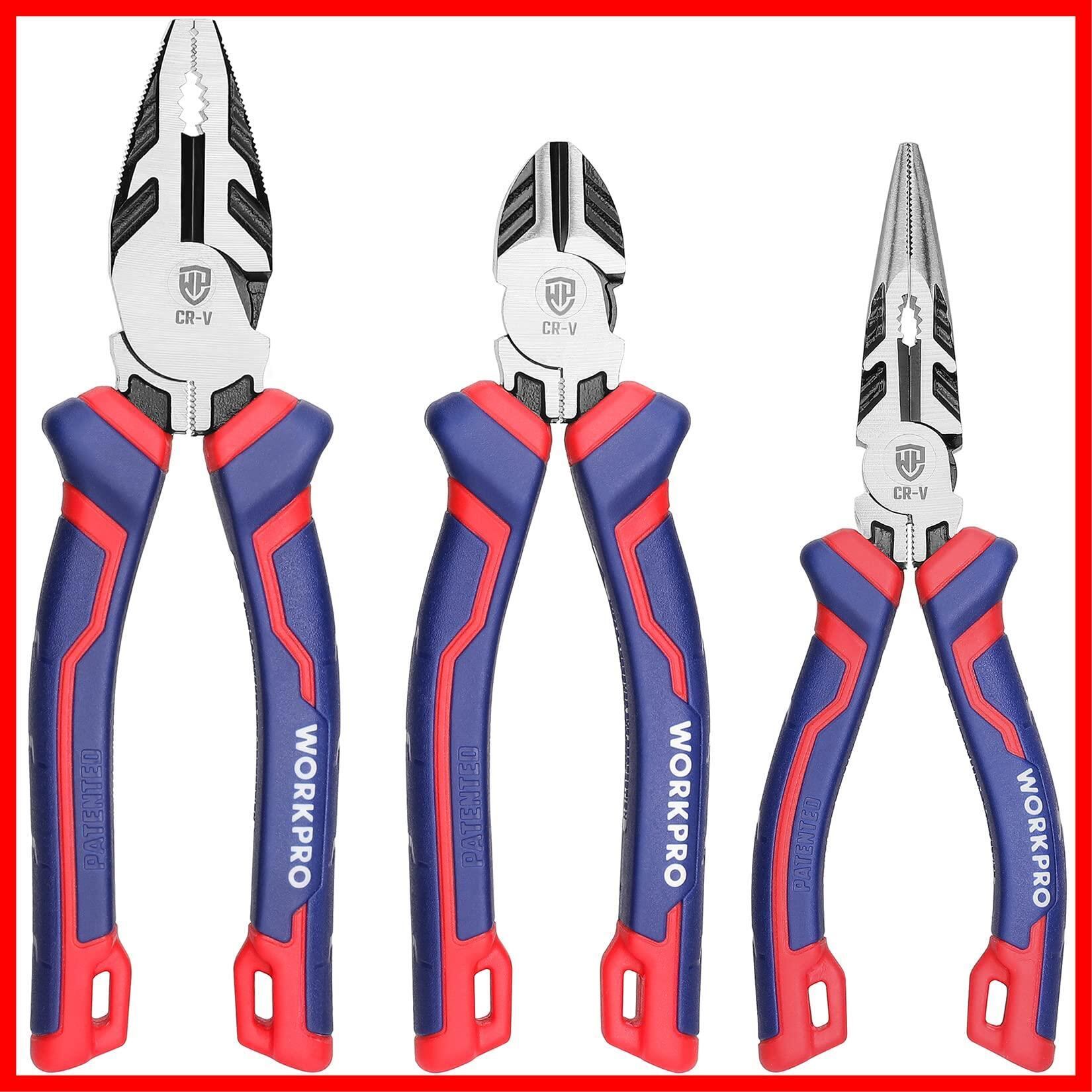 WORKPRO ペンチセット プライヤーセット 3本セット 強力ペンチ ラジオペンチ 斜めカットプライヤー 強力ニッパー 家庭工事 自働車修理 鋼線切断