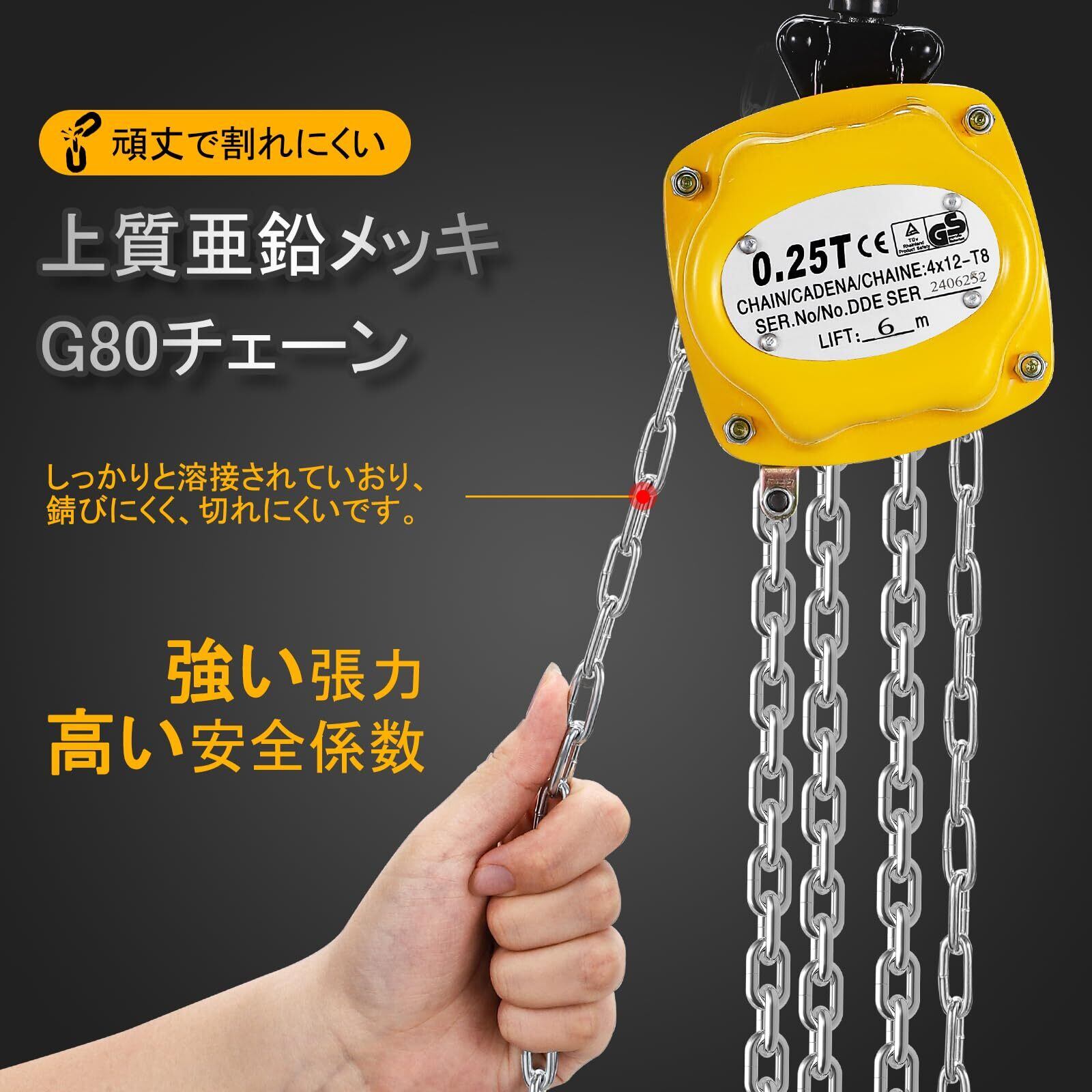 NEWTRY チェーンブロック 0.25t 6m 手動 250kg 軽量 ミニサイズ コンパクト設計 携帯しやすい 合金鋼 耐腐食チェーン 工場/倉庫/DIY用 安全ロック付き 吊り上げ 荷揚げ チェーンローラー チェンブロック 日本語マニュアル同梱 (0.25T)