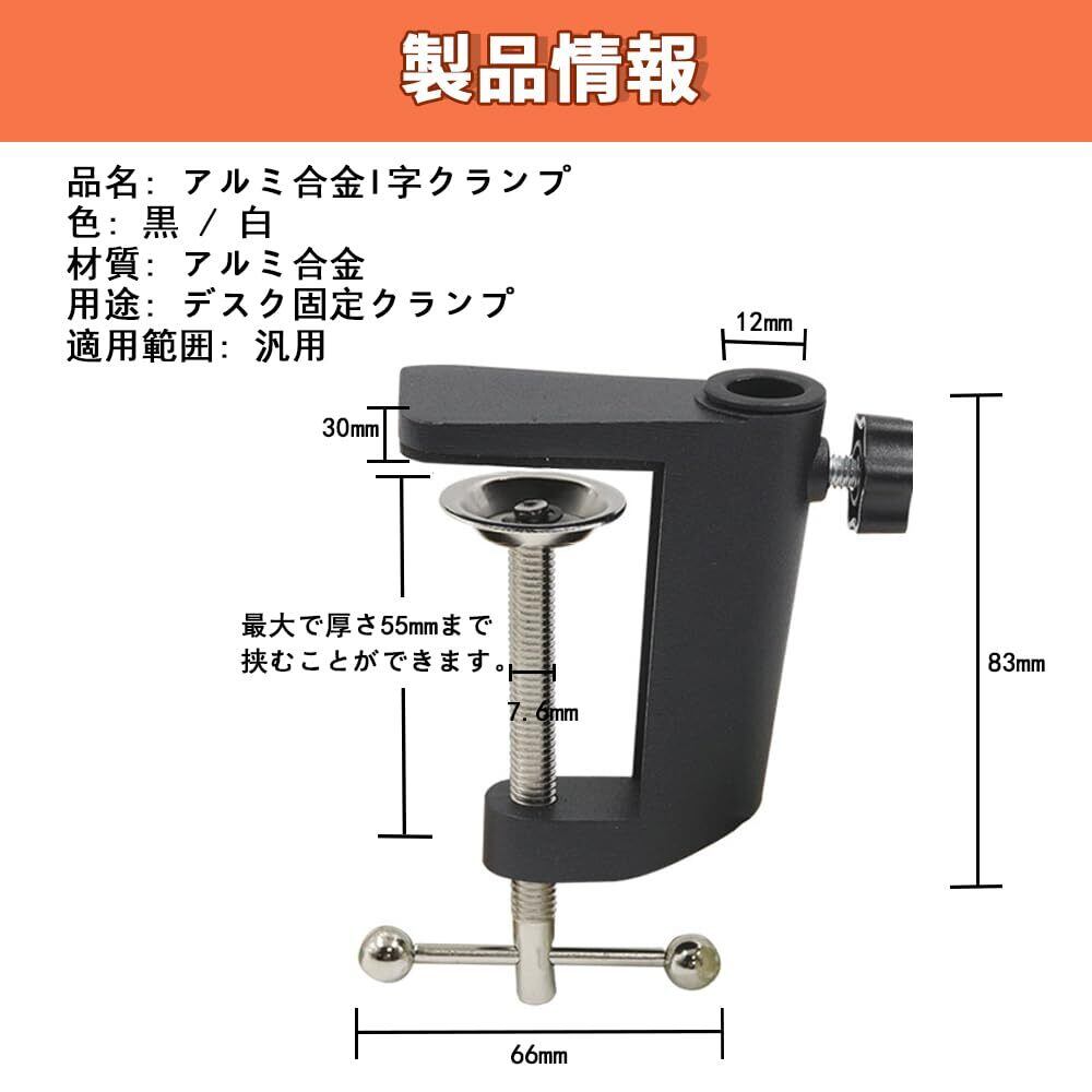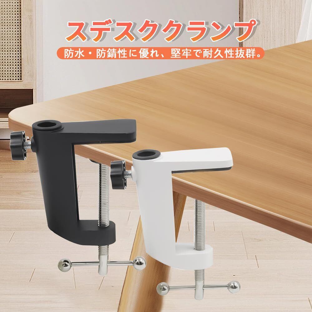 簡単な取り付け:追加のツールを必要とせず、このデスククランプは厚さ55ミリ以下のデスクエッジに簡単に固定できます。長いネジが付属しており、取り付けは迅速で便利です。さまざまなデスクや表面に対応します。