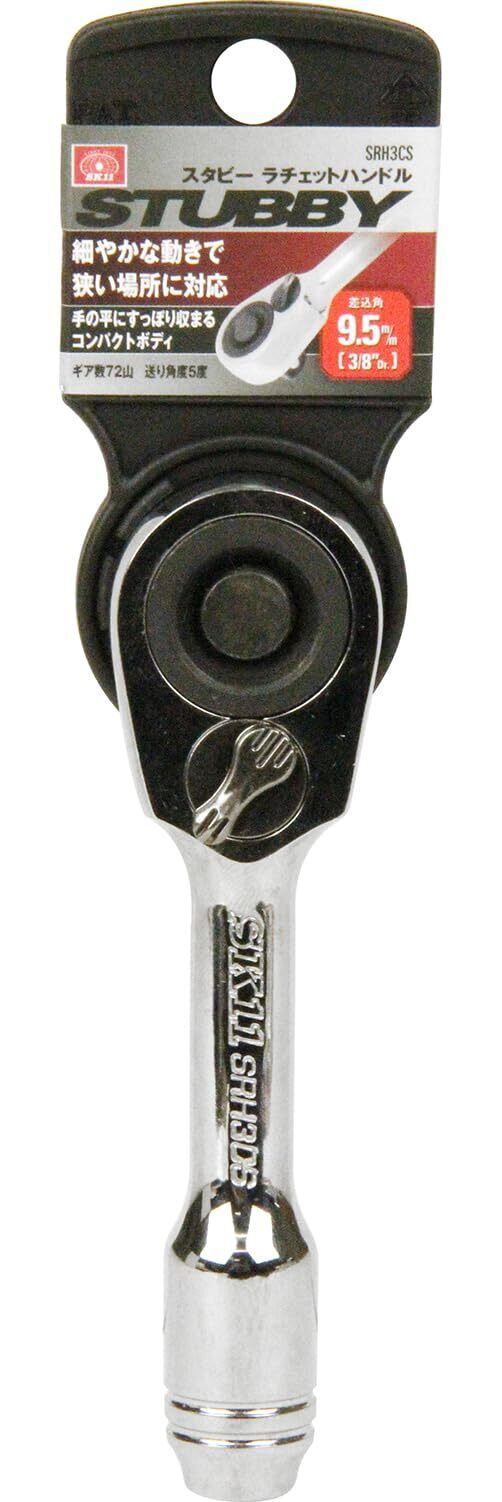 SK11(エスケー11) コンパクト スタビー ラチェットハンドル 差込角 9.5mm 3/8インチ SRH3CS