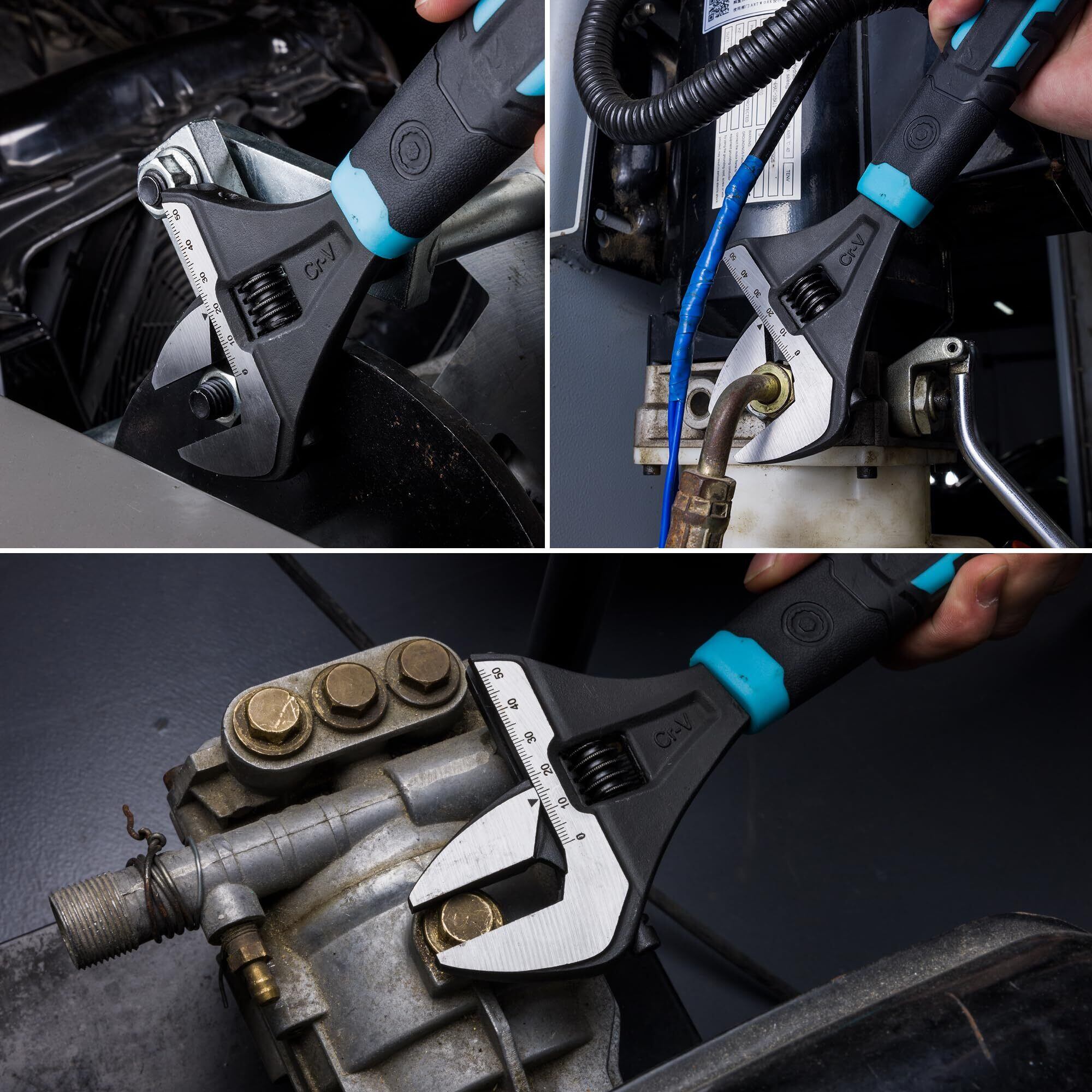 【在庫セール】DURATECH モンキーレンチ ワイド アジャスタブルレンチ 多機能スパナ 250mm 最大開口50mm 調整可能 目盛付 ゴムマット付 CR-V 水道管 配管 自動車 自転車 オートバイ修理 機械修理 メンテナンス | metta