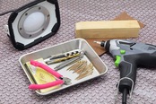 作業中のパーツ受けに