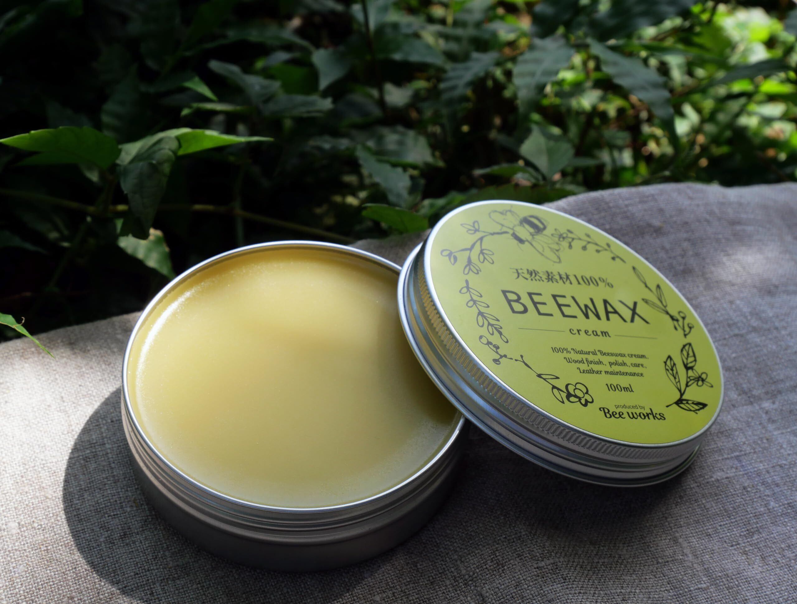 長野、岐阜、北海道で採れた国産蜜蝋、亜麻仁油、杉エキスによる100%天然素材で製造した蜜蝋ワックスです。小さいお子様がいるご家庭でも安心してお使いいただけます。
